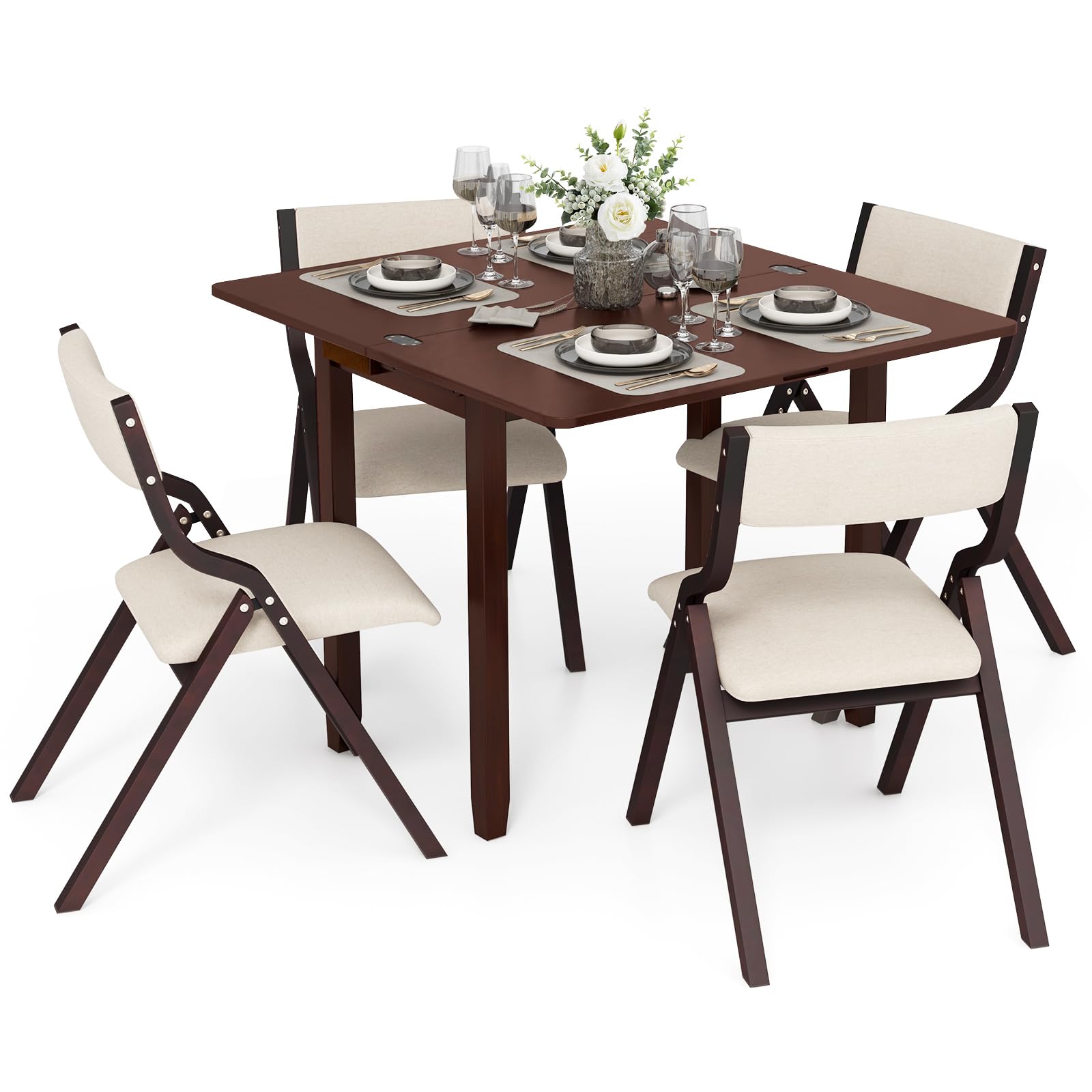 √The dining set has a relatively compact size with expandable table and folding chairs.