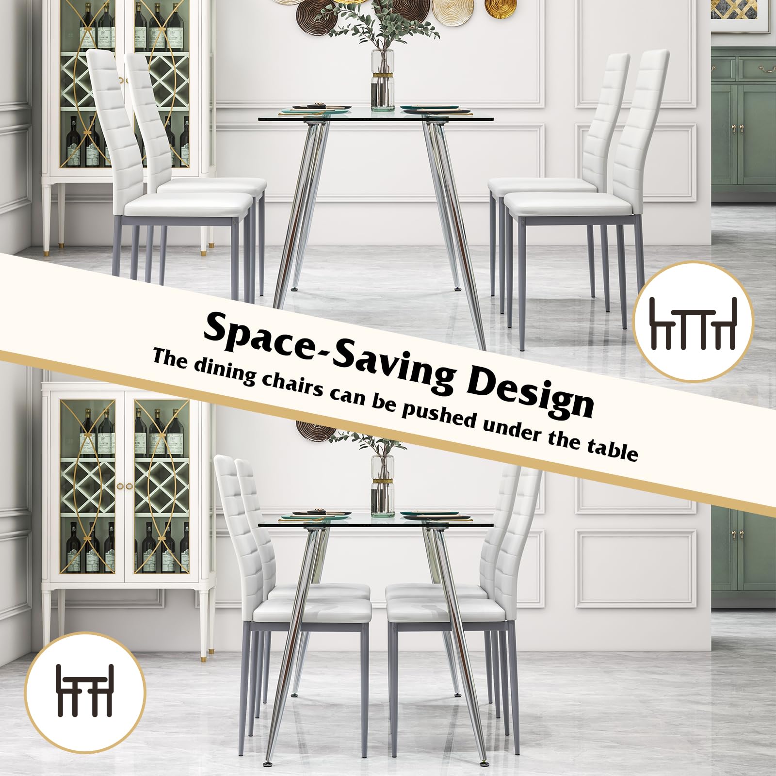 【Multiple Suitable Occasions】: The table and chairs feature a modern and elegant look that effortlessly enhances any dining space. This 5 piece dining set is suitable for a variety of occasions including dining room, kitchen, or even living room.