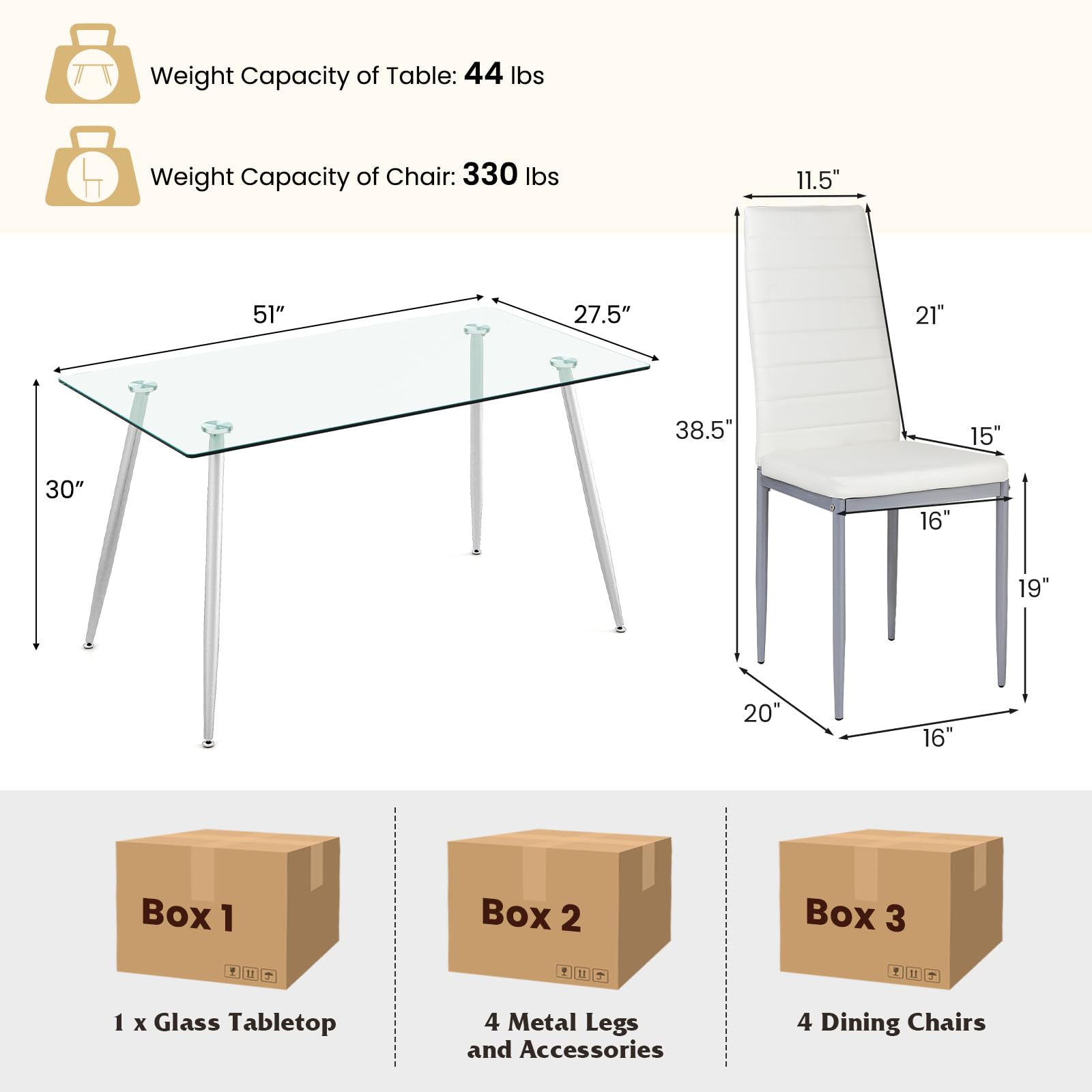 Weight Capacity of Each Chair: 330 lbs