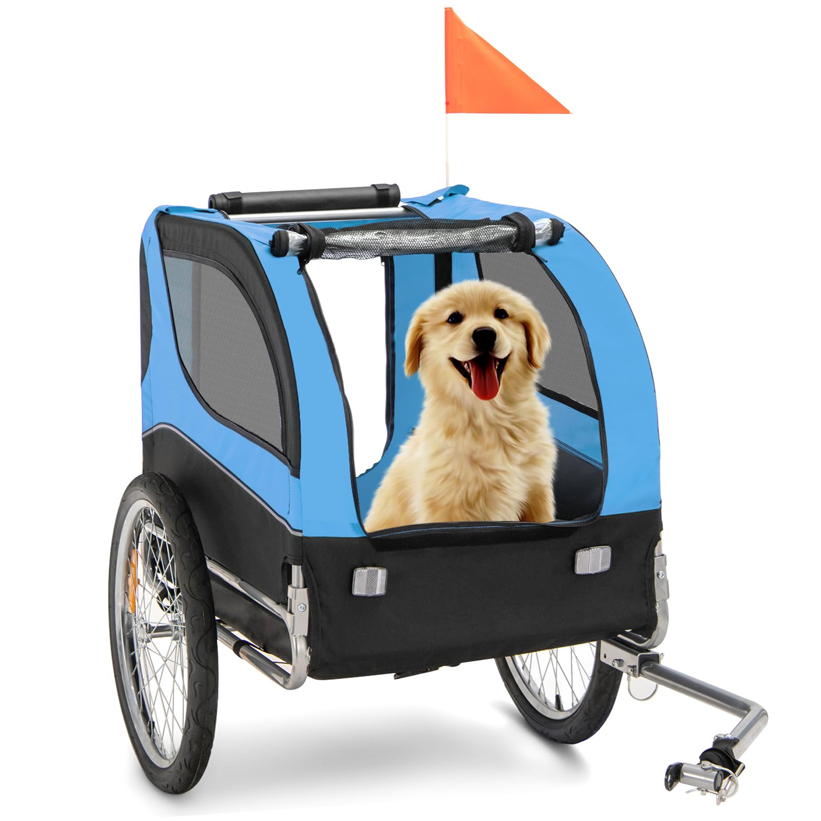 This pet carrier also has 3 doors, and 2 mesh windows to give your pet some fresh air and admire the scenic surroundings while on the road. Your furry friend will undoubtedly appreciate the trip with you, and you'll feel more comfortable knowing they're safe and secure in our pet trailer.