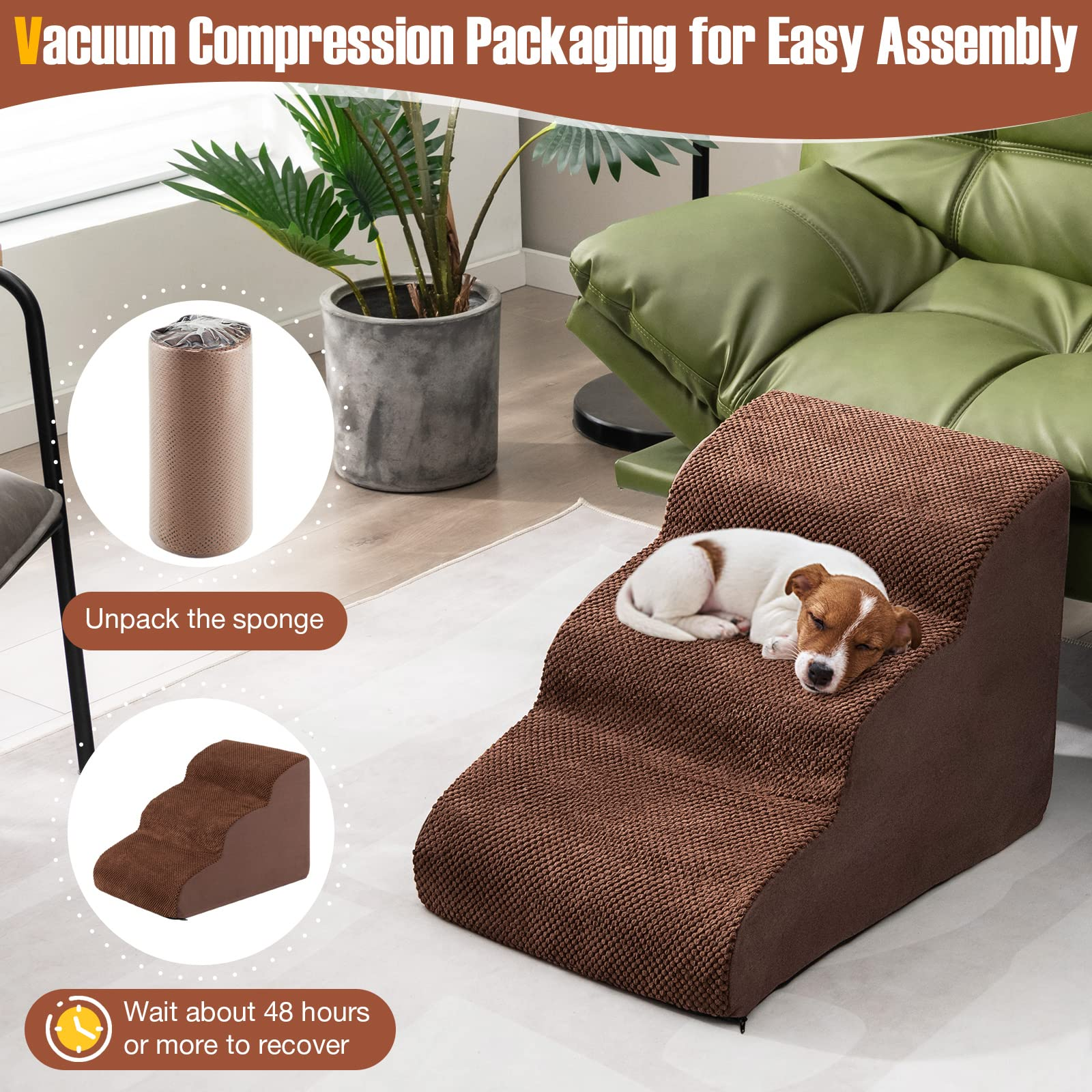 Special Notice: Our pet ladder is packed in a vacuum compression package, and it may take some time (48 hours or more, depending on the ambient temperature) to completely rebound.