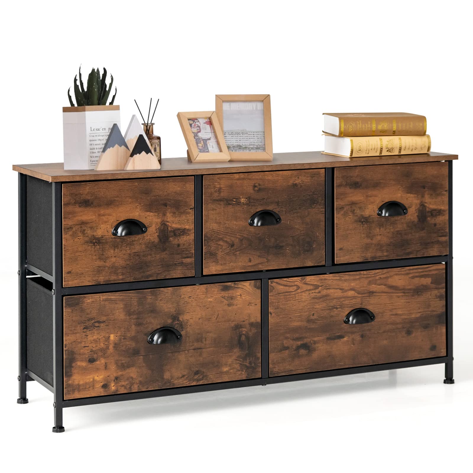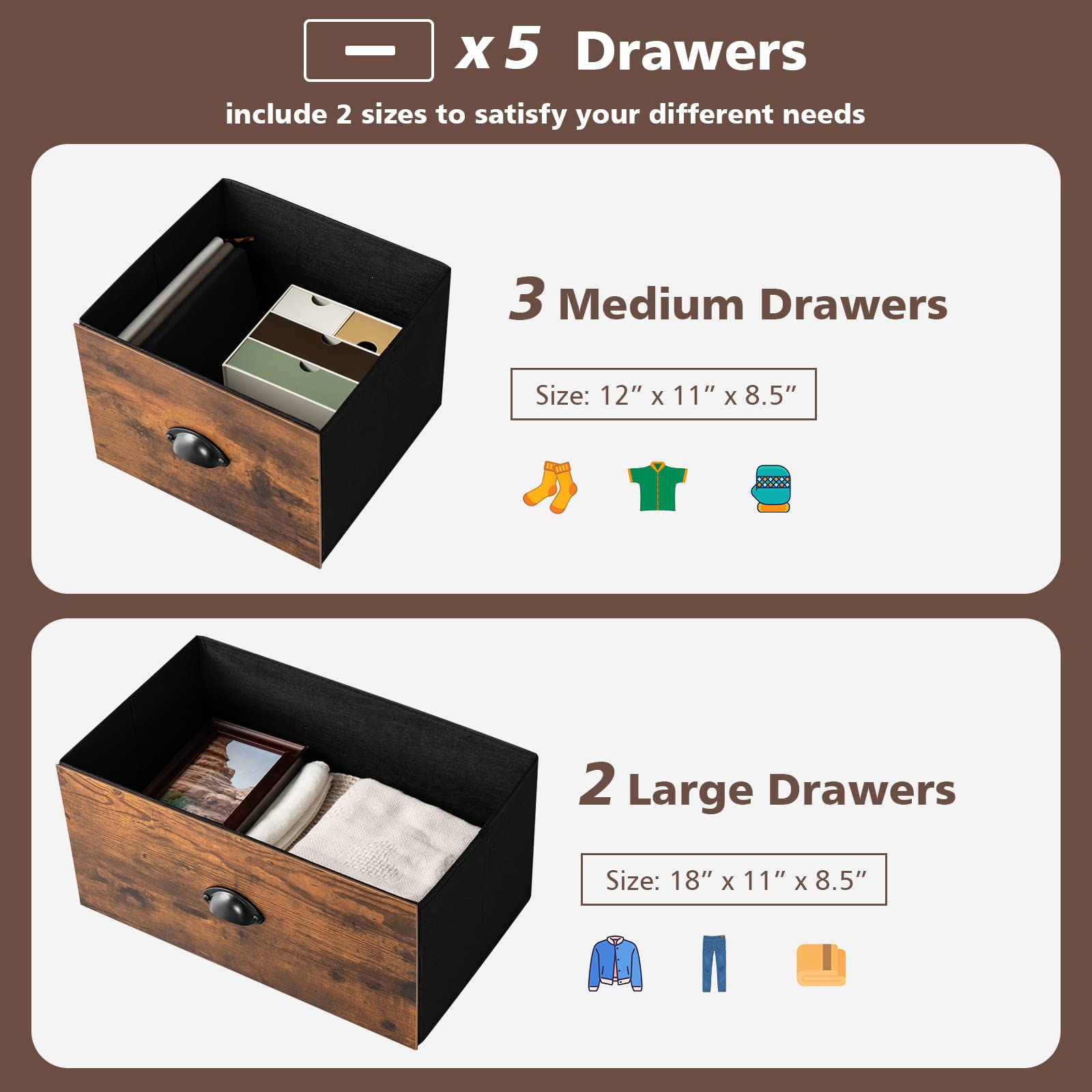 Retro Design & Functional Usage : With black metal frame and rustic brown finish, this dresser organizer brings retro style to your home. This functional dresser can work as console table, organizer, dresser in closet, bedroom, kid room. It also works as nightstand, side table in your living room, hallway and entryway.
