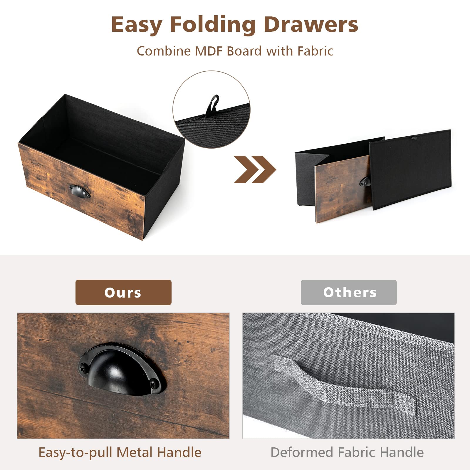 Thoughtful Well-made Design: This dresser for bedroom has 6 removable foldable drawers; Easy pull metal handles help open and close the drawers smoothly. With anti-tip kit included, you can mount the table to the wall and ensure safety for you and your family. This chest of drawers is suitable to be placed in nursery room or toddlers room.
