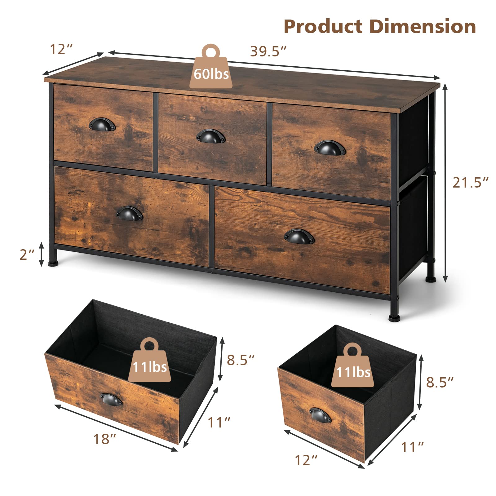 Overall Dimension: 5 drawers: 39.5''x 12''x 21.5'' (L x W x H)