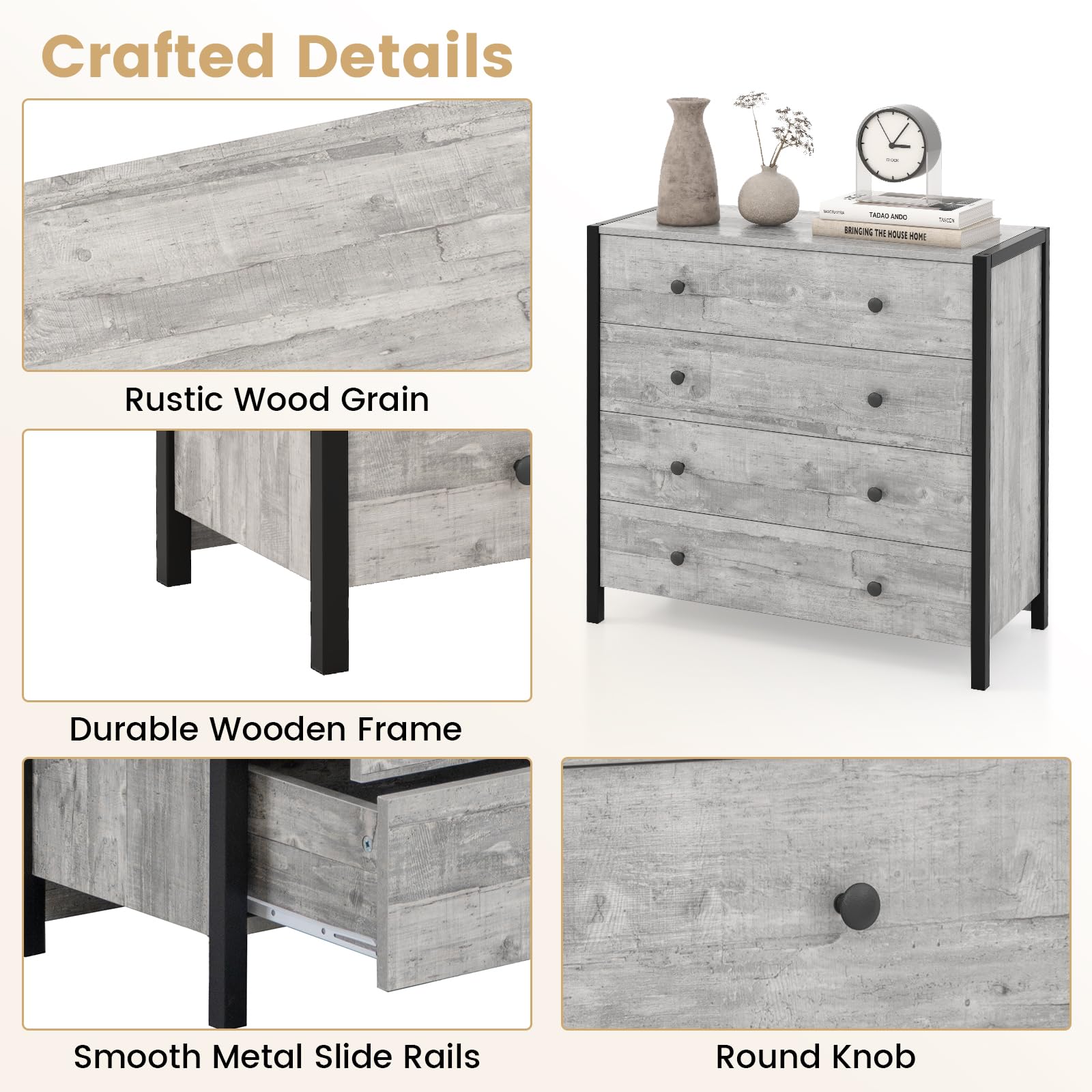 4 pull-out drawers offer enough space to neatly store and display your clothes, books, and decorations, keeping your space clean and organized. For reliable structure, the dresser is supported by sturdy wooden frame for long-lasting use. Considering safety use, anti-toppling device is equipped to provide added safety and stability, ensuring the storage organizer stay securely in place. All in all, the 4-drawer chest is applicable to various occasions, making it a perfect combination of storage, display and decoration.