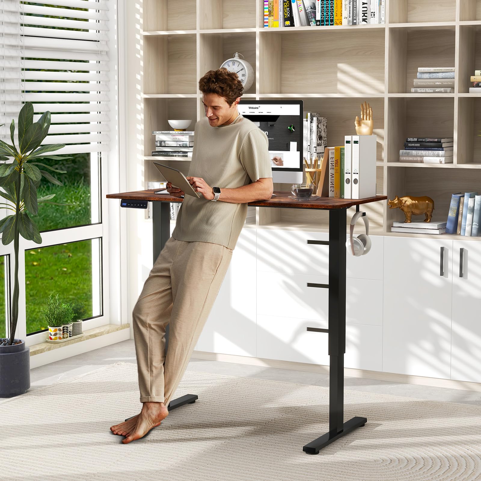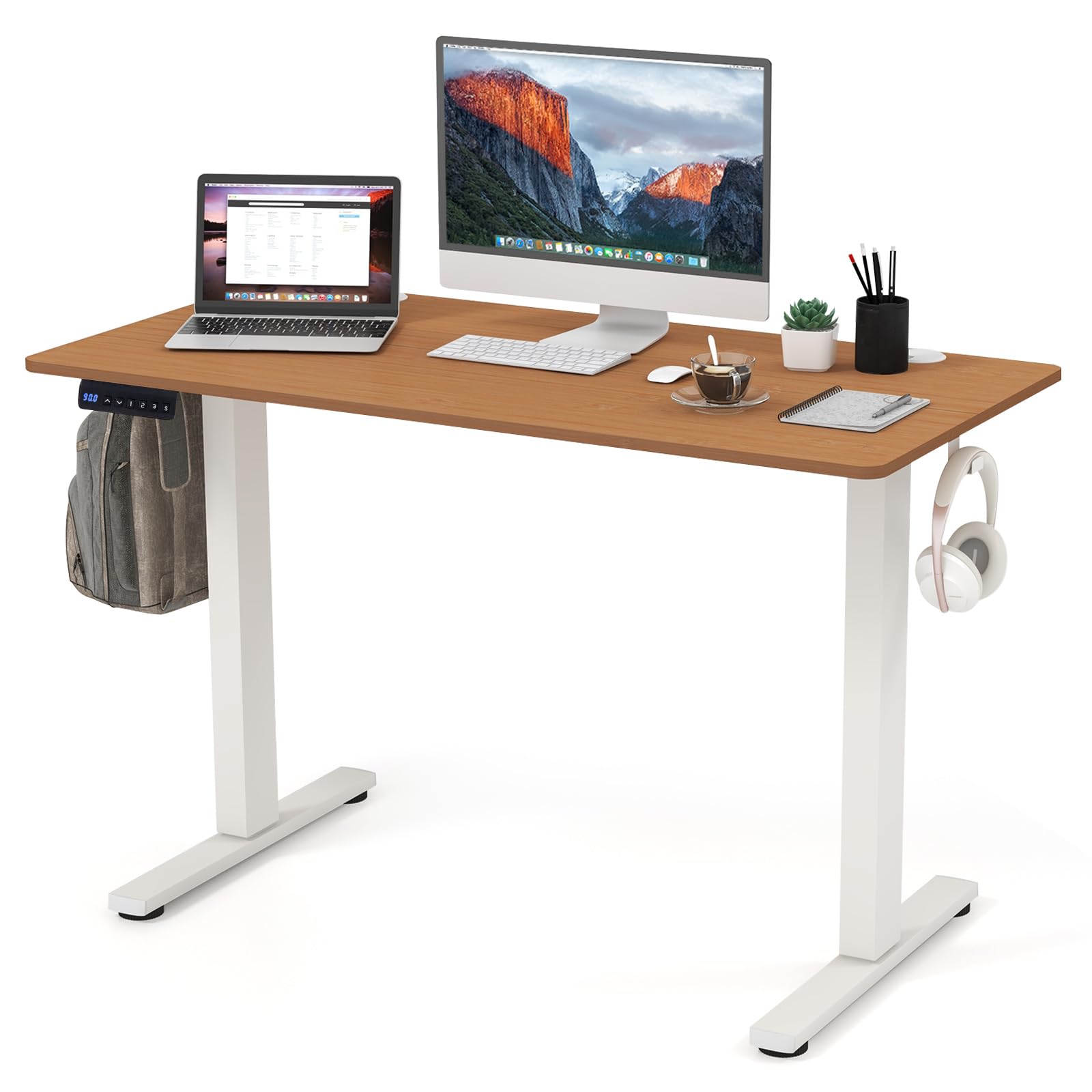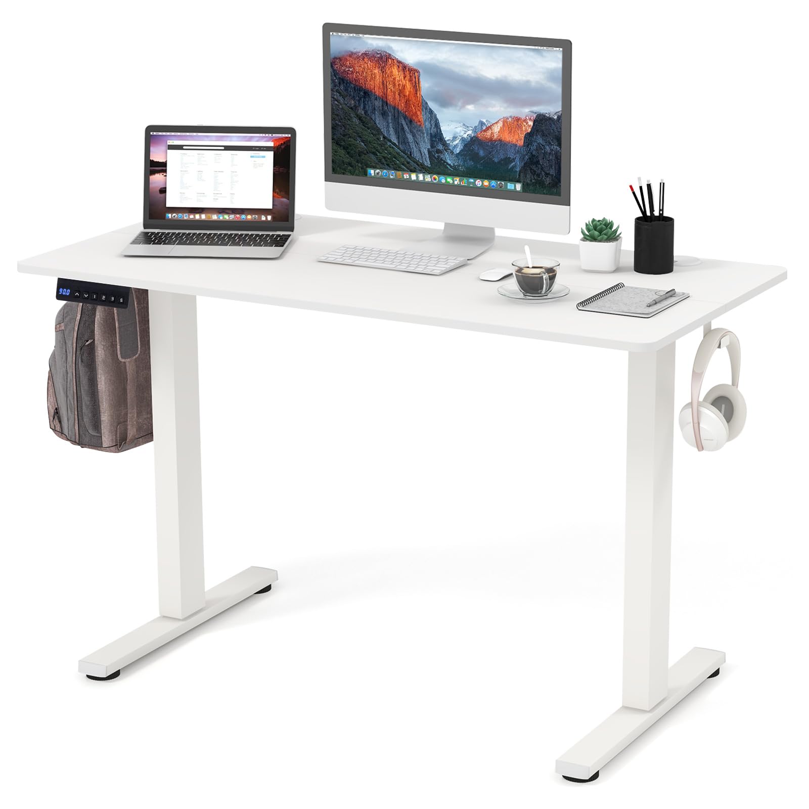Elevate your workspace with a standing desk that adapts to your daily flow. This sit stand desk is mounted on a sturdy metal frame with adjustable foot pads and allows for height adjustments from 28.7” to 48”. With a strong motor, it can confidently bear a load of up to 176 lbs and satisfies different needs. The expansive 48”L x 24”W desktop is roomy for working, while having other user-friendly details to avoid chaos, including the smart cable management solutions and handy side hooks. Command your computer desk’s elevation with the intuitive control panel, complete with 3 present height levels and an LED display for exact positioning. Safety is paramount, with an anti-collision feature and more safety designs, like child lock, overheat protection, and overload protection. More premium details await your discovery.