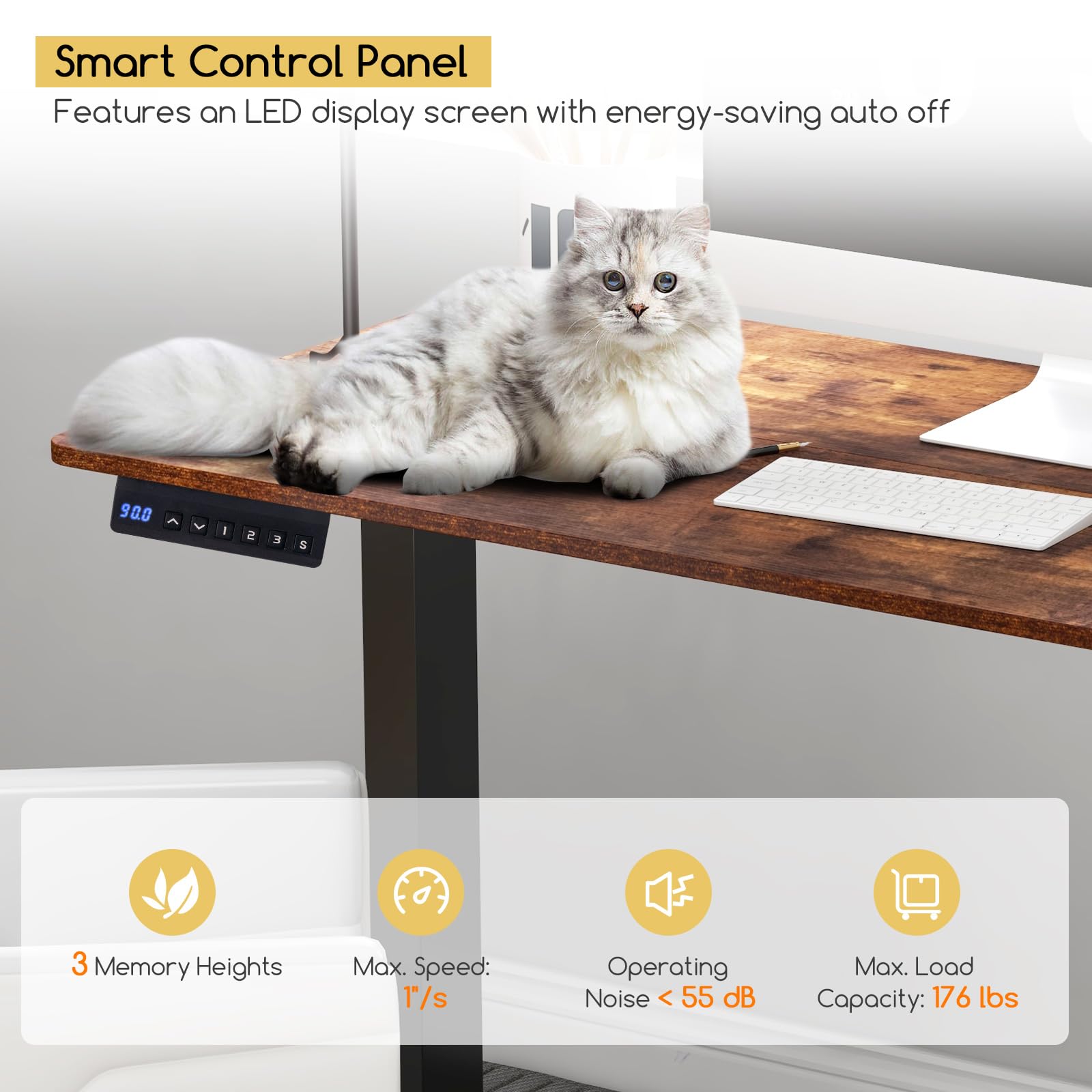 - Simplified Operation: With the integrated control panel, you can easily select from 3 preset height levels for a streamlined user experience. The rising computer desk also has an LED display screen that timely provides accurate feedback.