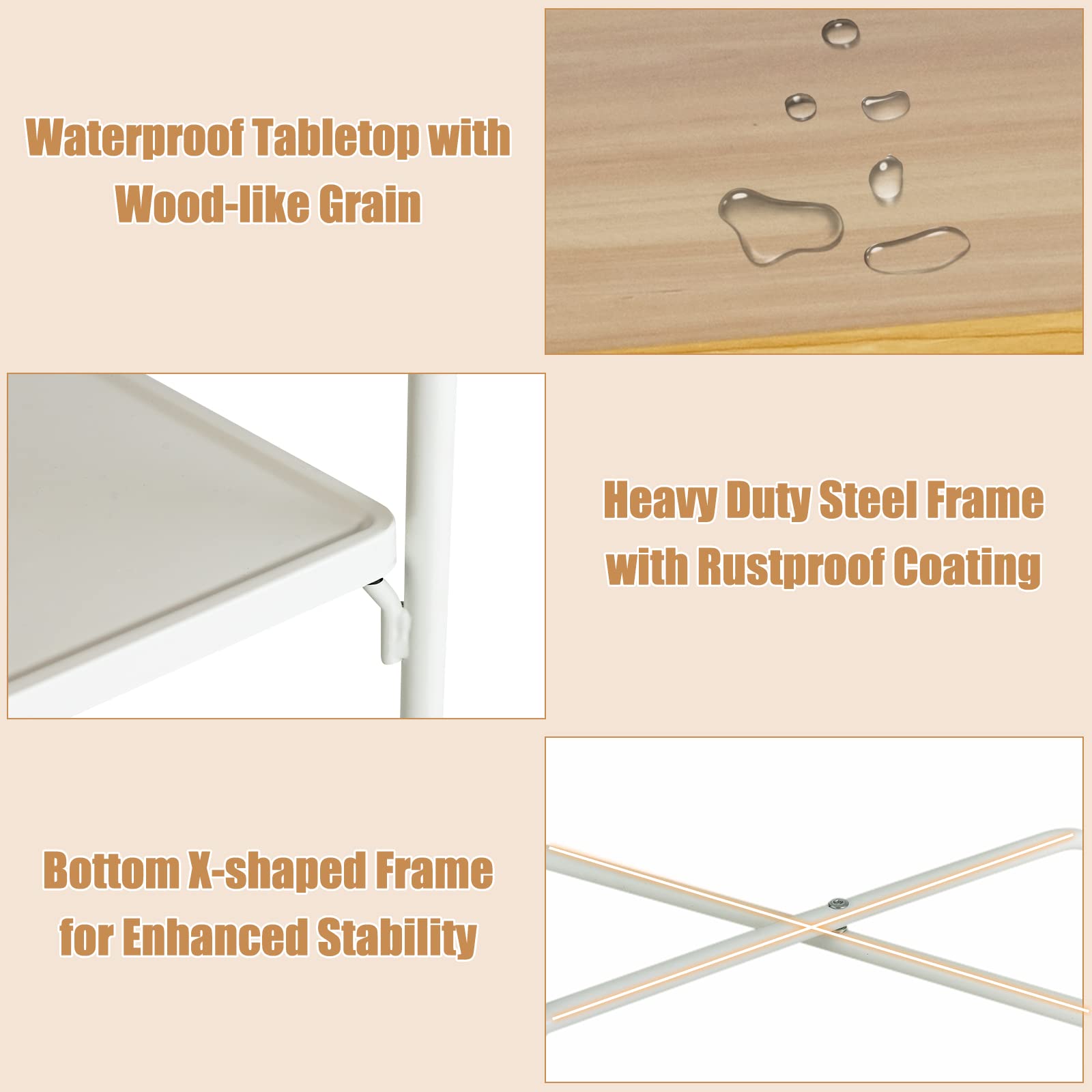 - [Sturdy & Stable Construction]: This side table with wheels is constructed from sturdy metal, and the frame features a stable X-shaped structure. The table top is made of premium MDF material, providing long-term use and smooth surfaces for easy cleaning.