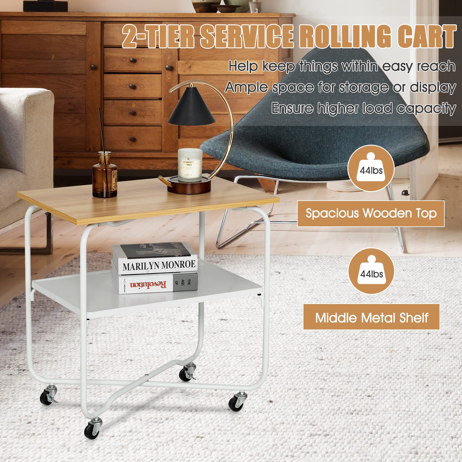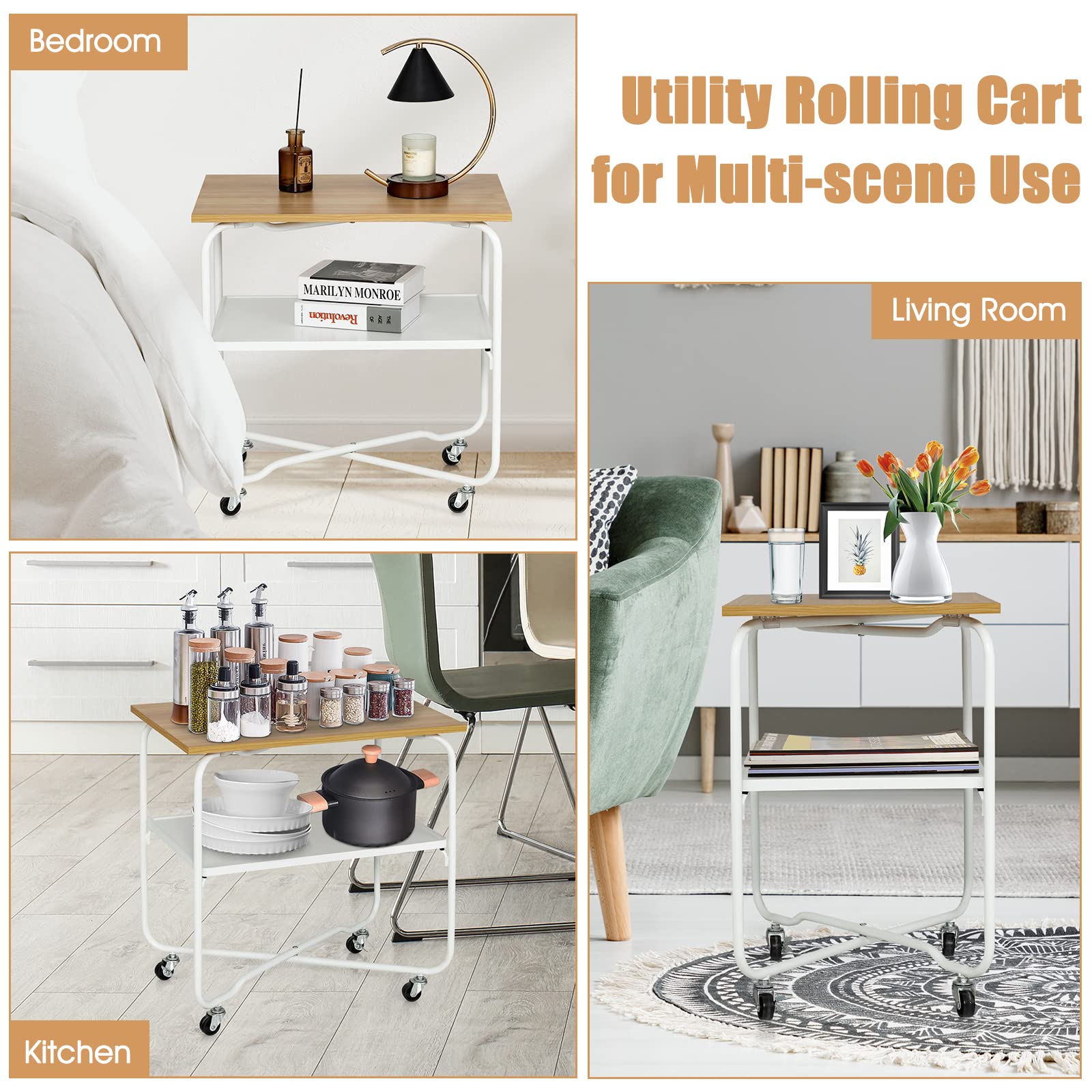 - [Additional Storage for Home]: Equipped with a flat top and a metal lower shelf, this rolling side table provides additional storage for your ornaments, daily necessities, magazines, or other odds and ends. It will be a functional addition to small spaces.