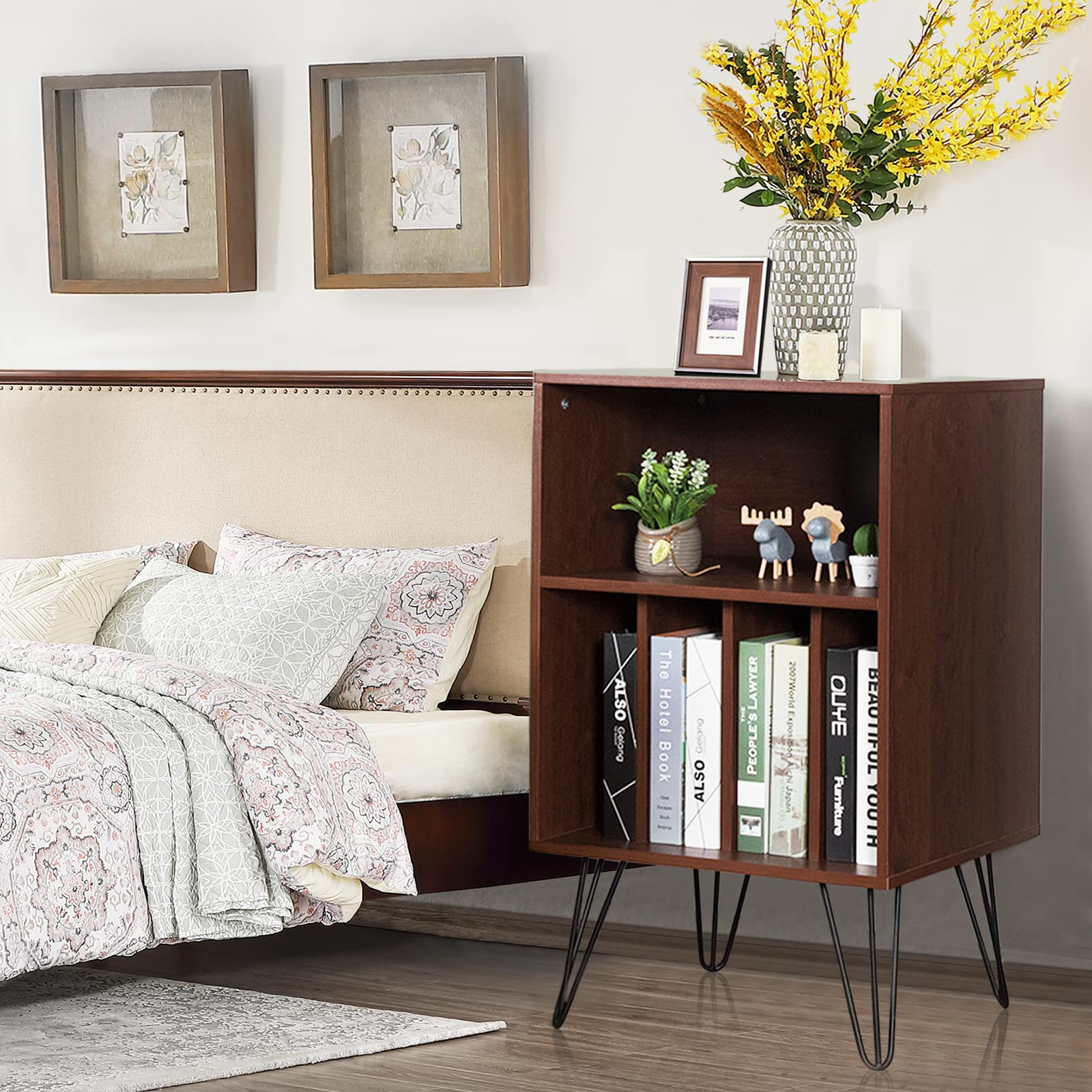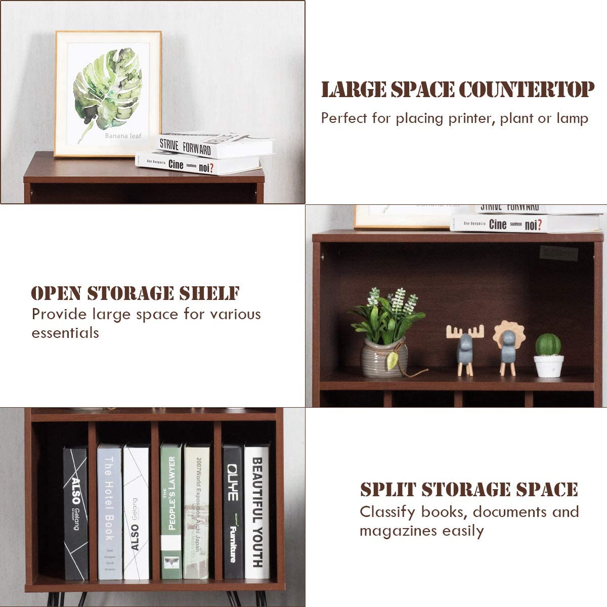 This free standing cabinet is a good choice for putting and classifying documents, books, records or decors to manage your room! Constructed of premium materials, this standing shelf is solid and durable for a long life span. The end table is designed with tilted legs which enhance the stability. Besides, there is anti-tip strap at the back of bookcase to prevent falling when you use it. With sleek and elegant style, it is perfect for living room, bedroom, office and more.