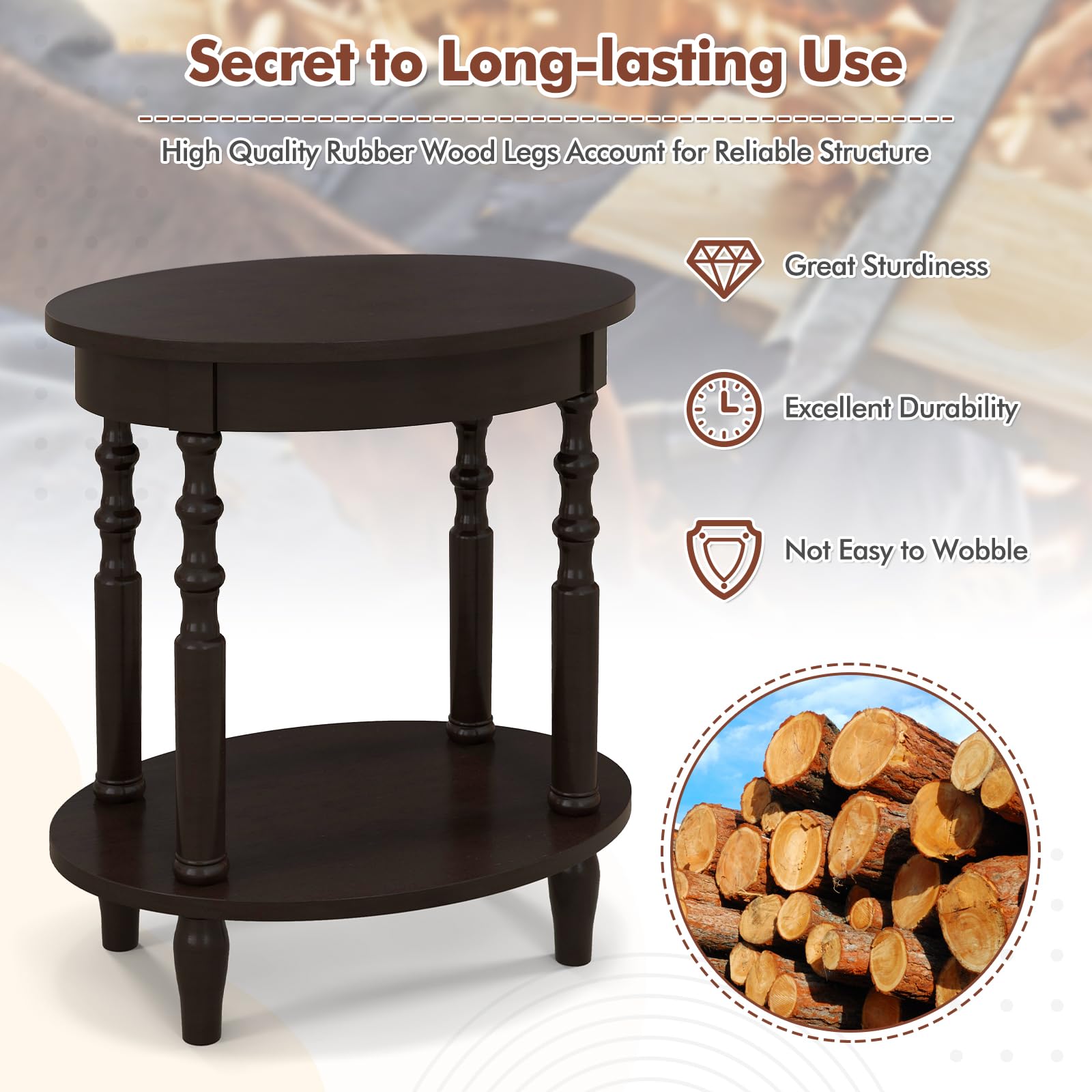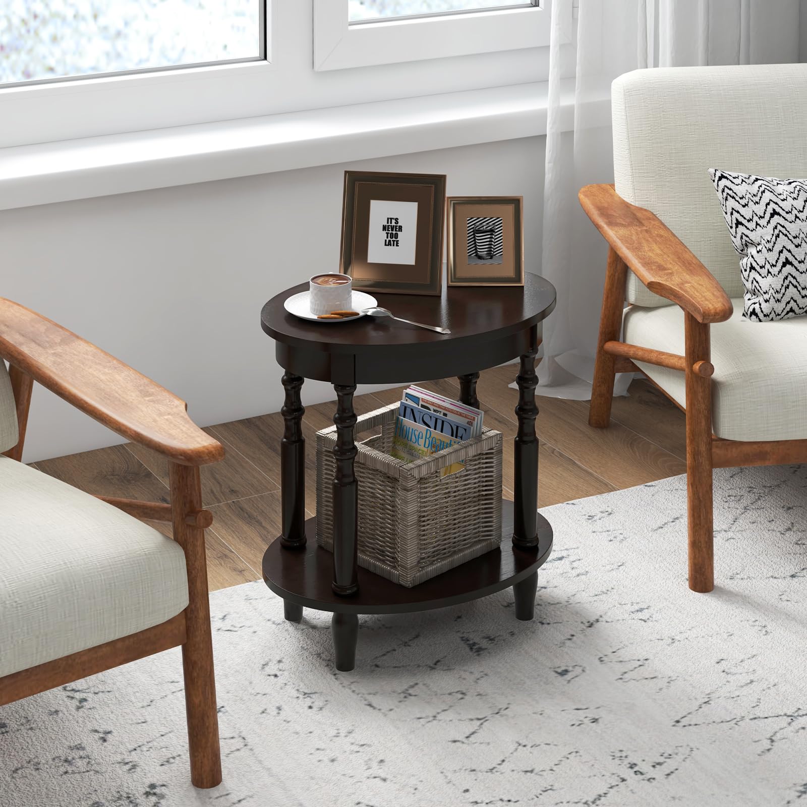 - [Say Goodbye to Chaos]: This practical 2-tier side table is designed to release you from trouble of messy small stuffs. In addition, any daily items placed on the tabletop can be easily accessible. The bottom shelf also enlarges storage space for frequently-used items.