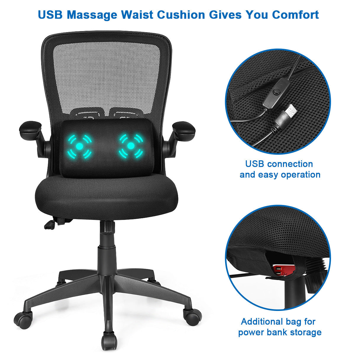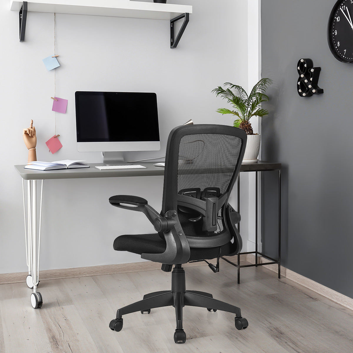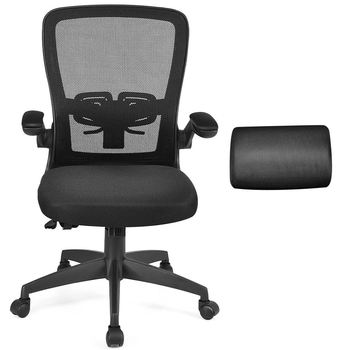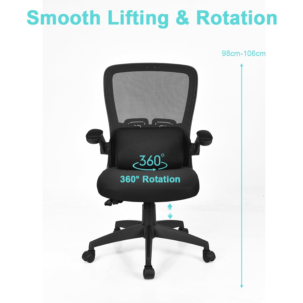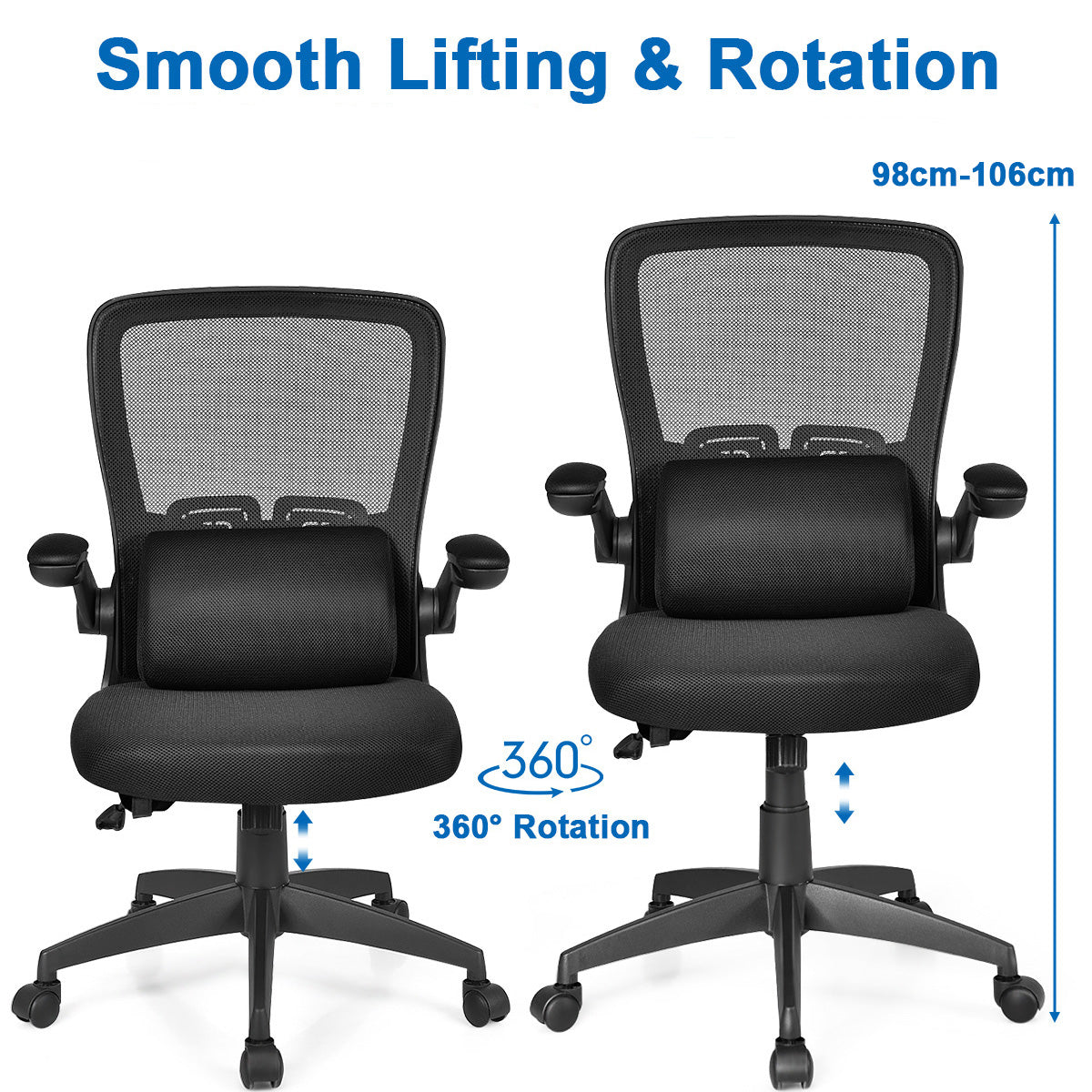 Our mesh office desk chair will offer you extra comfort and new sitting experience. The ergonomic back design fits your body perfectly and the lumbar support will relieve your backache effectively.You will sit comfortably and feel relax with cushioned seat and armrests. Additionally, the chair features a mesh back that allows airflow to keep you cool. The adjustable seat height will match up various heights of tables for your convenient use. Five wheels on the base offer easy and smooth motion on the floor. It is suitable for office and home, creating really comfort for you. Enjoy your working and relaxing time with this ergonomic desk chair.