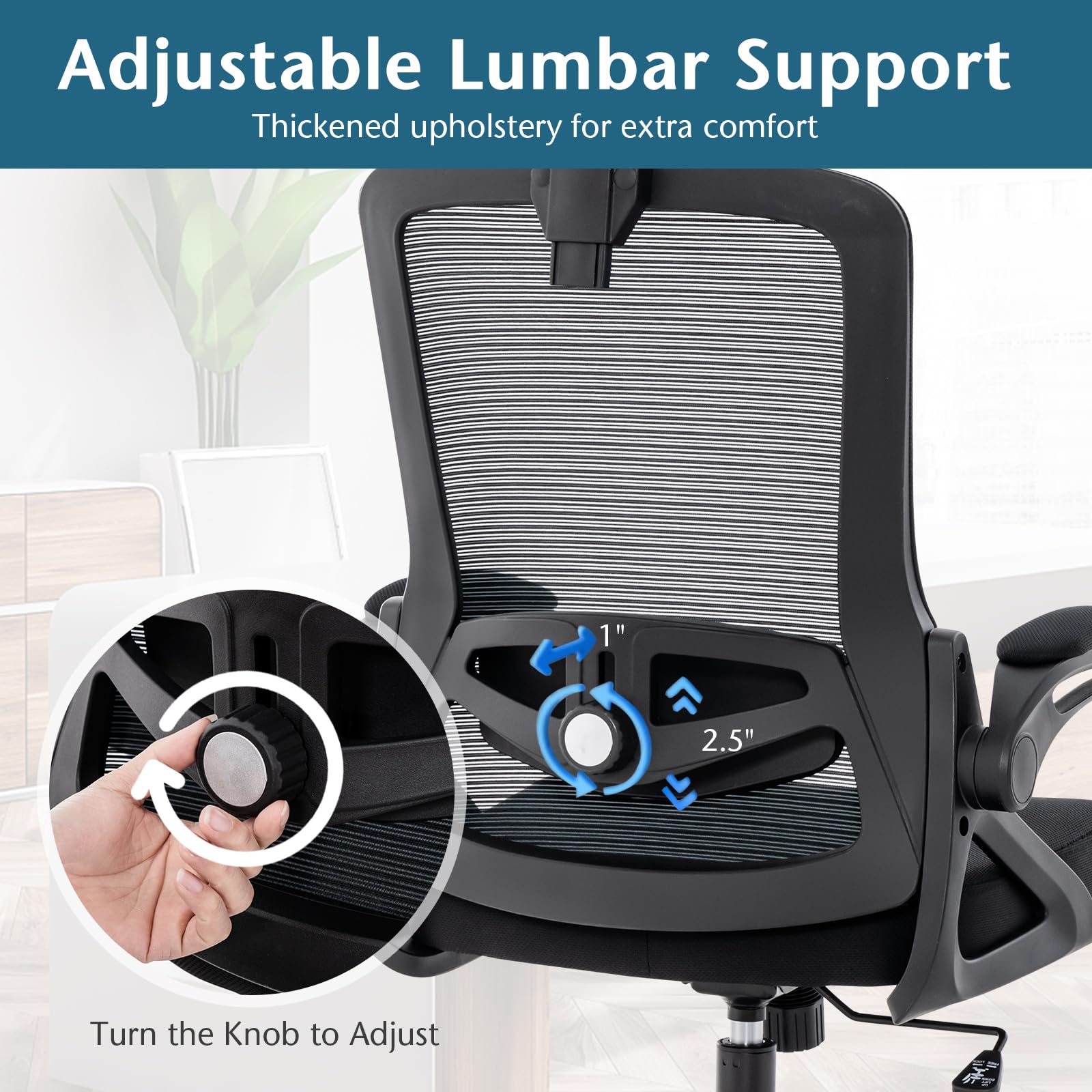 Giantex Ergonomic Mesh Office Chair, High Back Desk Chair with Adjustable Headrest, Lumbar Support