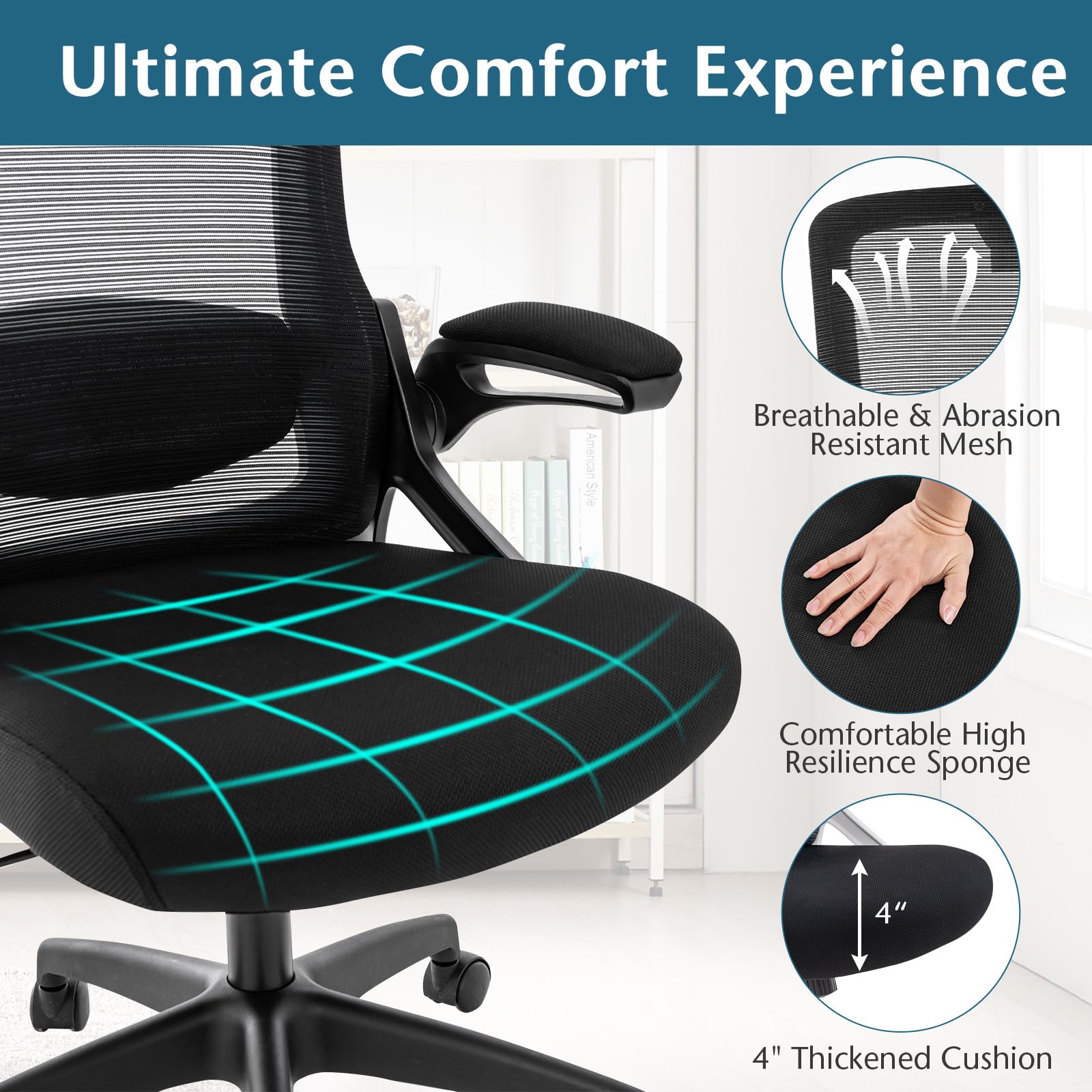 • Ultimate Comfort Experience: The ergonomic backrest, made of breathable and abrasion resistant mesh, promotes airflow, keeping you cool even during long hours of work. The 4" thickened cushion is padded with comfortable high resilience sponge, providing exceptional softness and support.
