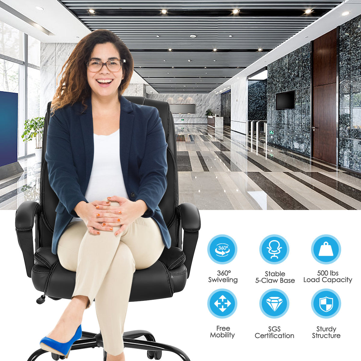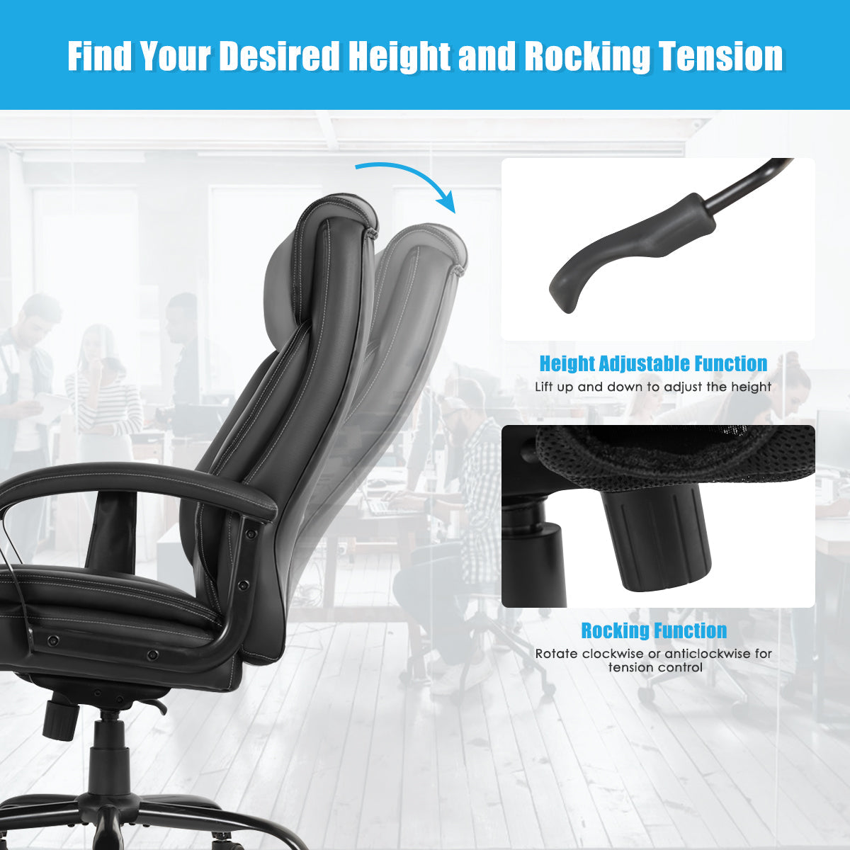 Rocking function (0 degree -20 degrees enables you have relaxation during working Integrated headrest, padded armrest, humanized lumbar support and wide seat relax your body Soft faux leather and high resilience sponge for higher comfort