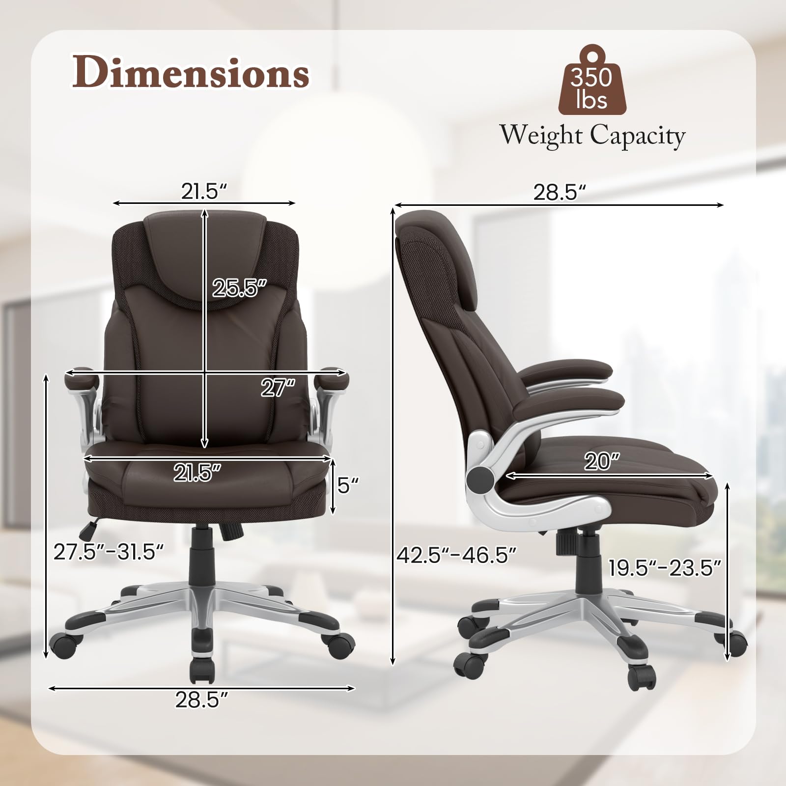 - [Ergonomic Office Chair]: The executive chair features a contoured backrest with headrest that has separated zones for optimal support. The thick seat cushion will further improve comfort and the flip-up armrests, which can be adjusted as needed, offers a customized sitting experience.