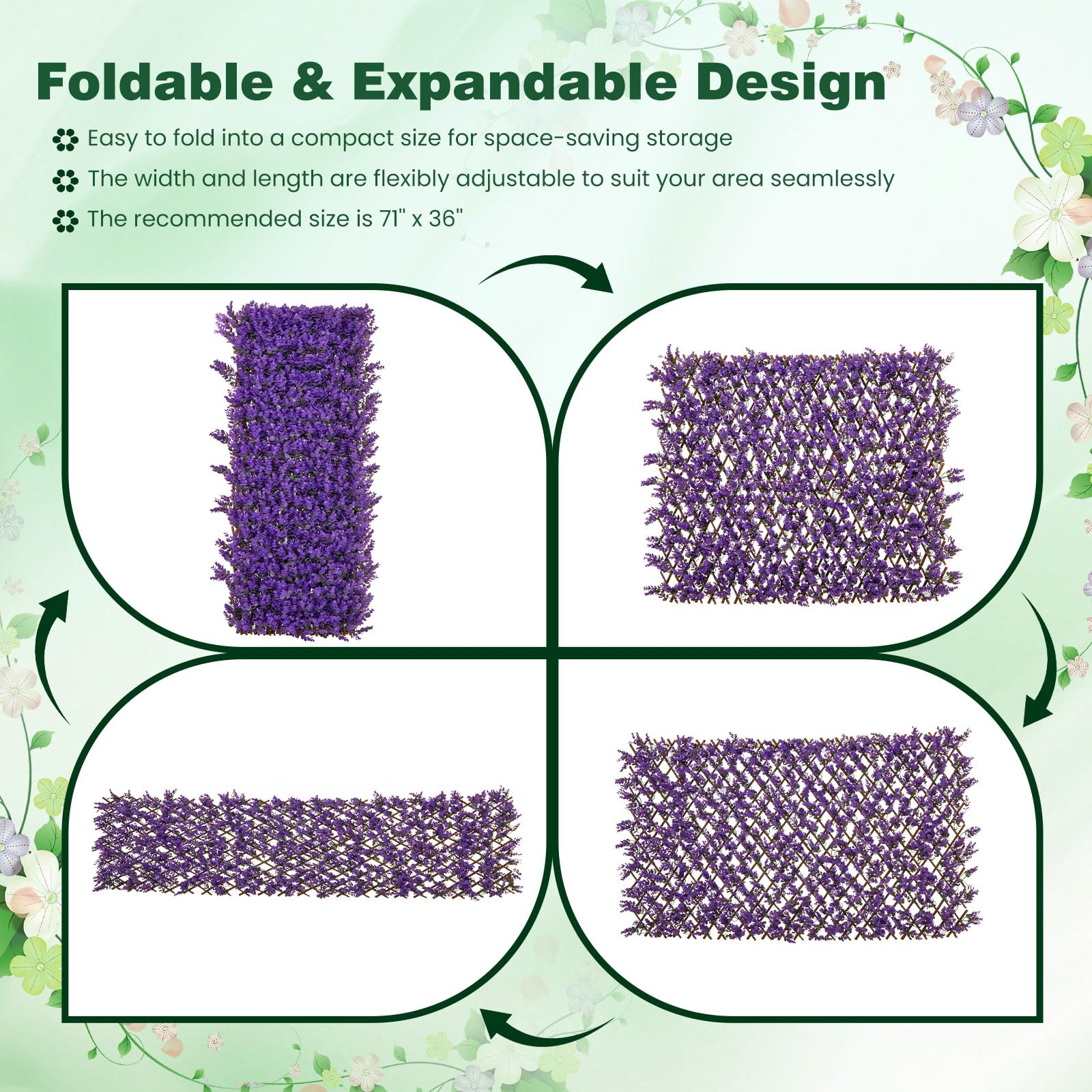 - 【Easy to Expand & Fold】: The retractable fencing panel can be easily expanded in width and length to seamlessly fit into any outdoor space. Meanwhile, the faux fencing panel can be folded into a compact size for storage when not in use. The recommended size is 71"x 36".