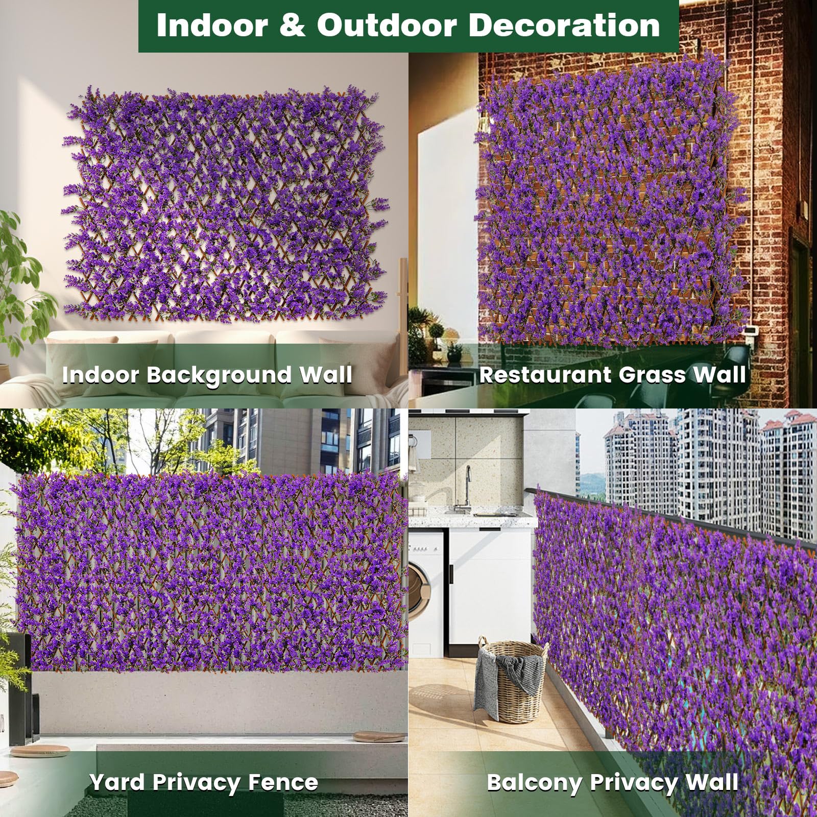 - 【Lifelike & Exquisite Appearance】: The expandable privacy fence screen features rich 6-tier vibrant purple eucalyptus leaves, making it a realistic backdrop for anywhere you decorate. In addition, the real wicker frame will bring a natural touch to your space.