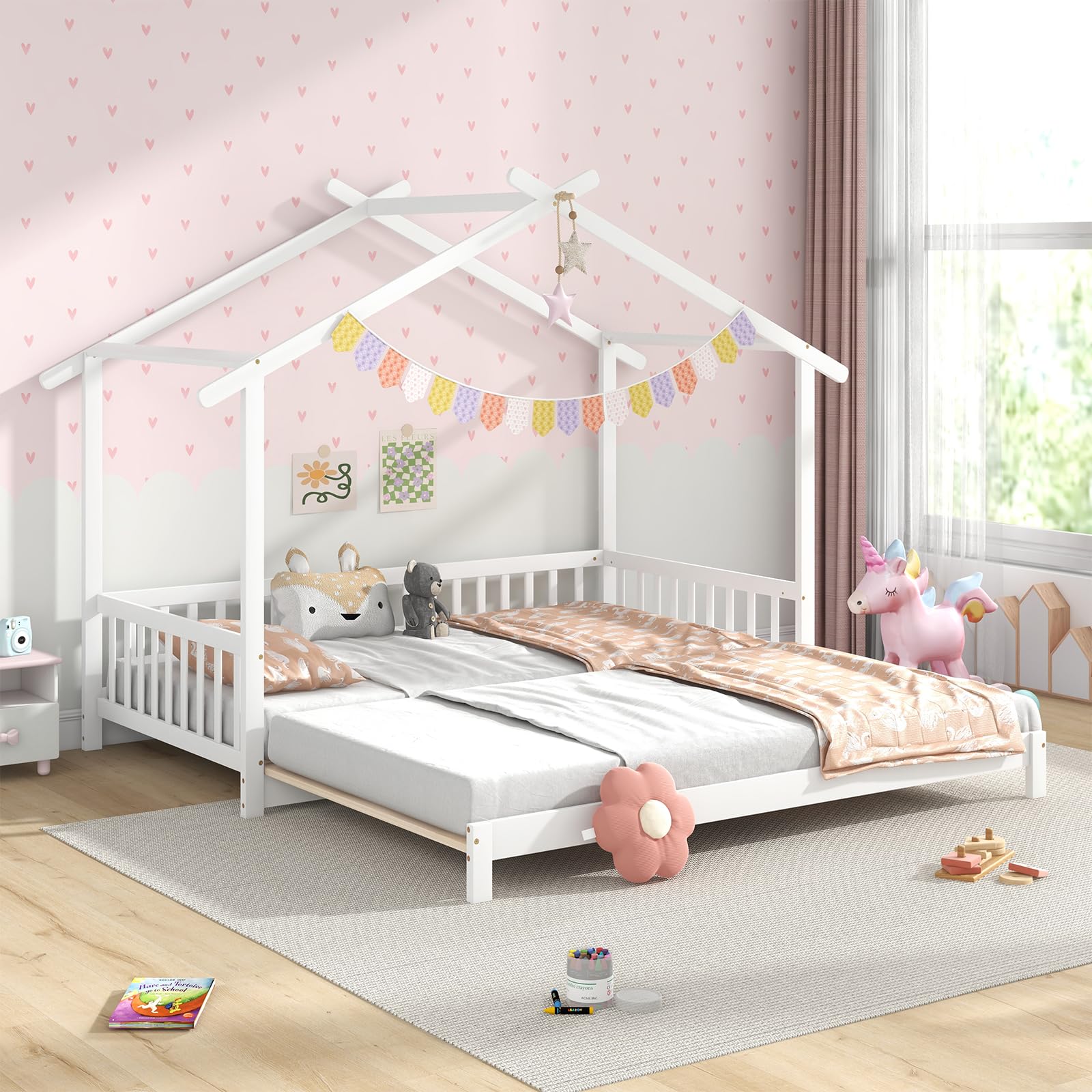 Designed in a whimsical house shape to create a dreamy sleeping space