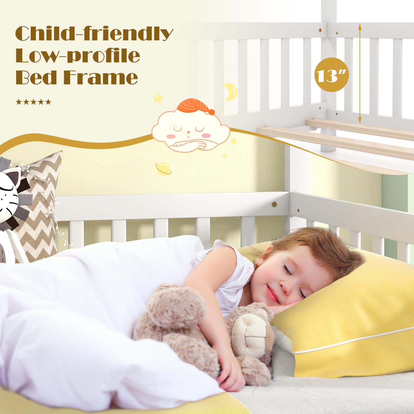 13" high guardrails give kids a safe and comfortable sleep experience