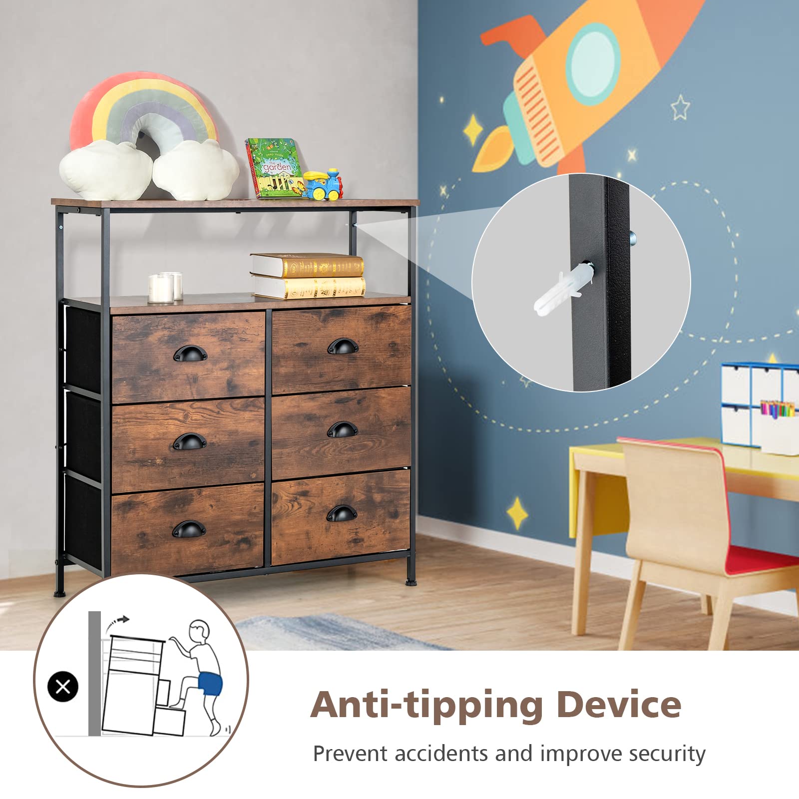 - 6 Drawers organize daily items like clothes, toys, tissue, etc.