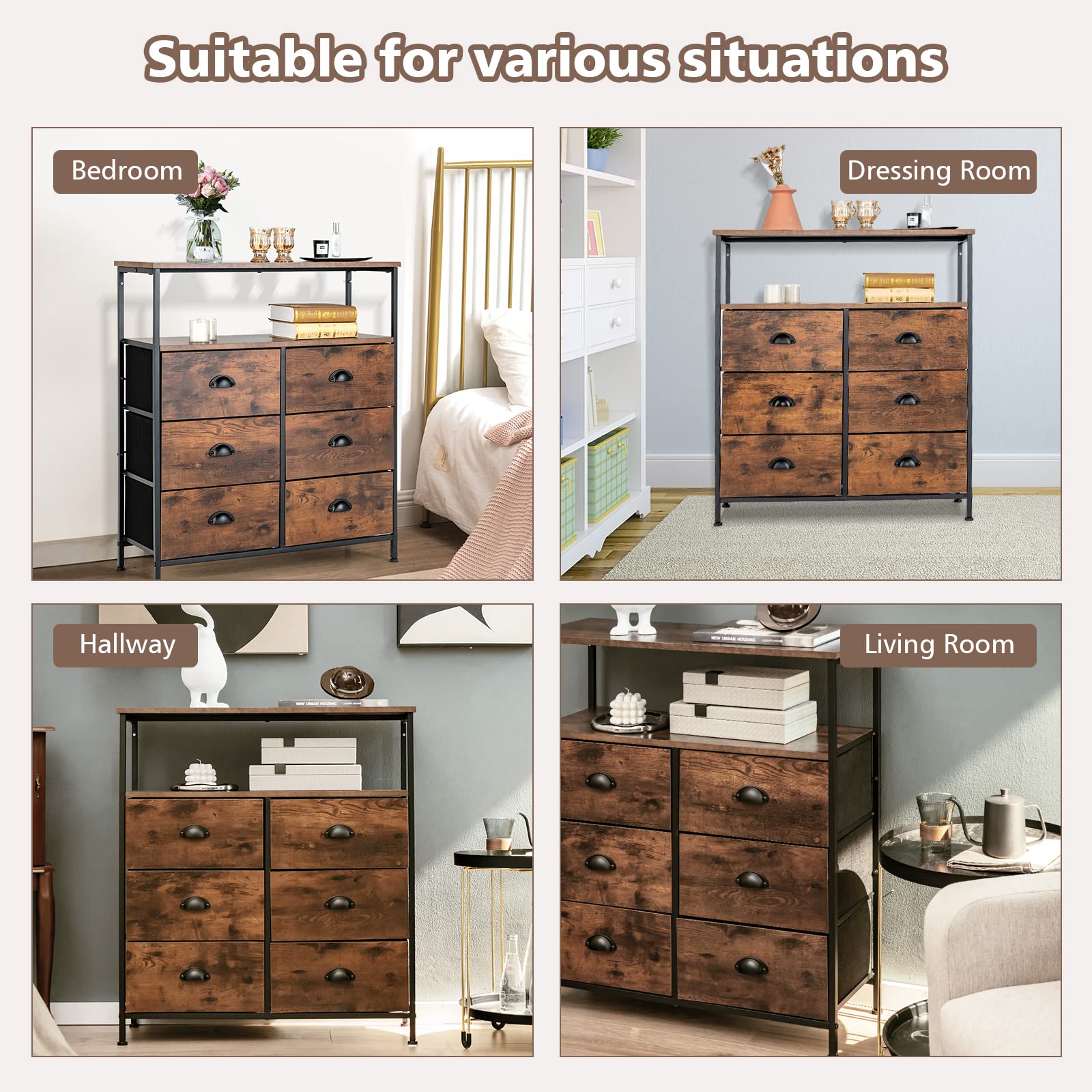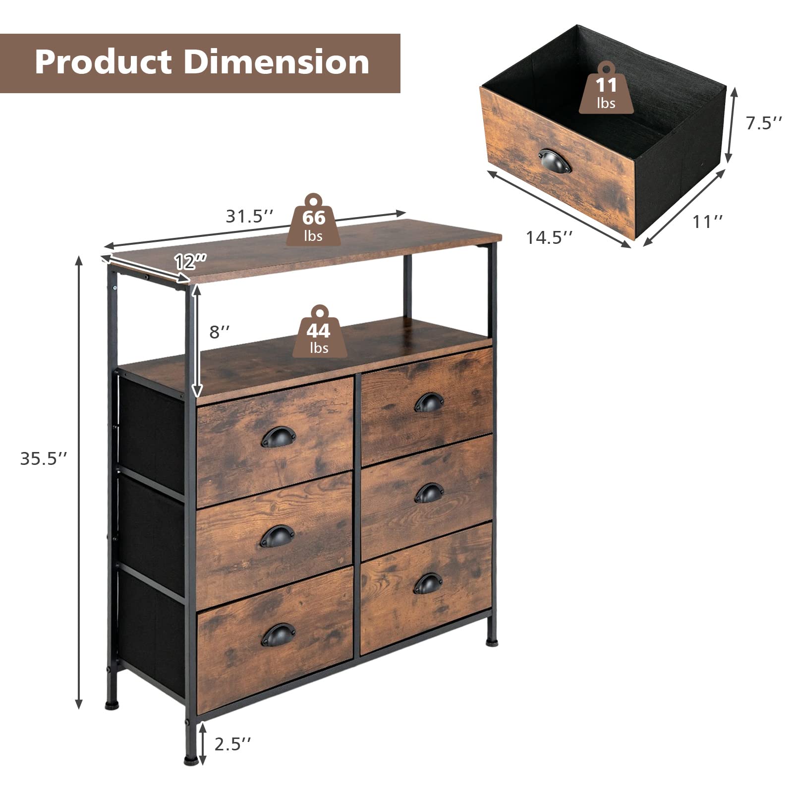 Designed with spacious shelves and drawers, this fabric dresser provides endless organizational possibilities and keeps your room neat. In addition, the premium board and steel create a sturdy construction to well support your treasures. You can place this rustic storage organizer at various situations to complete your decoration and meet different demands.