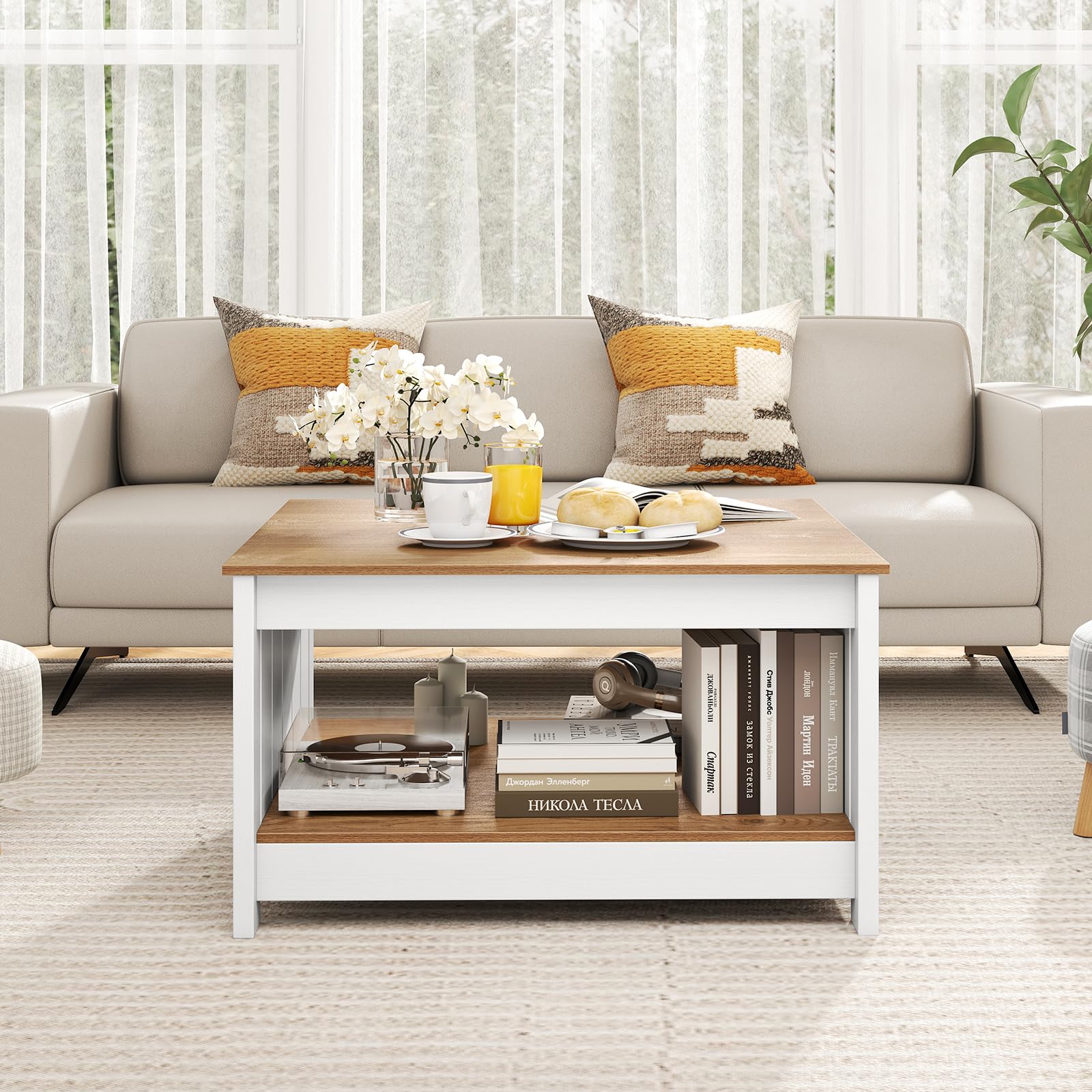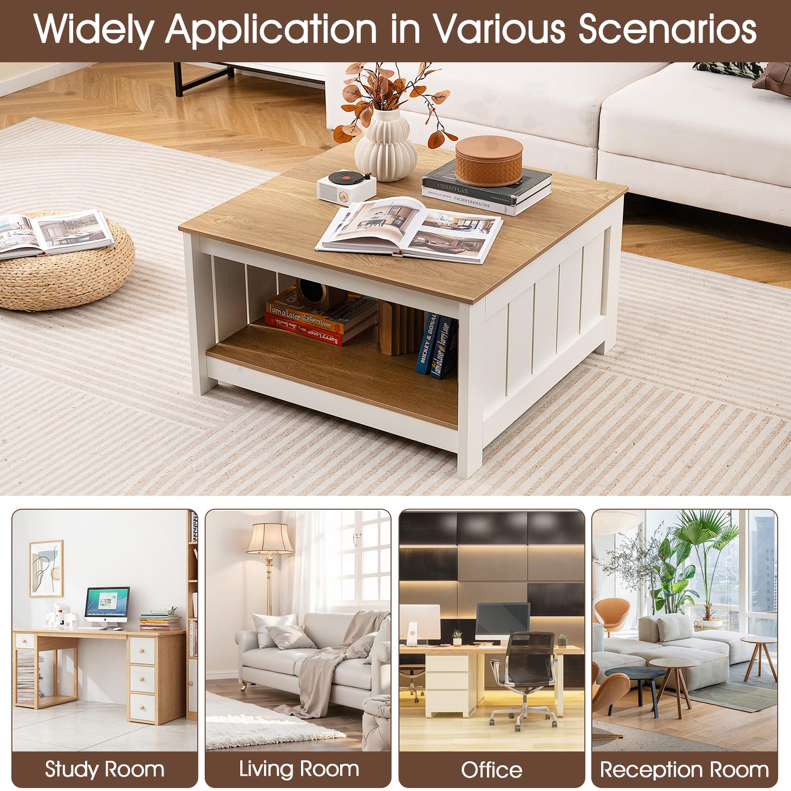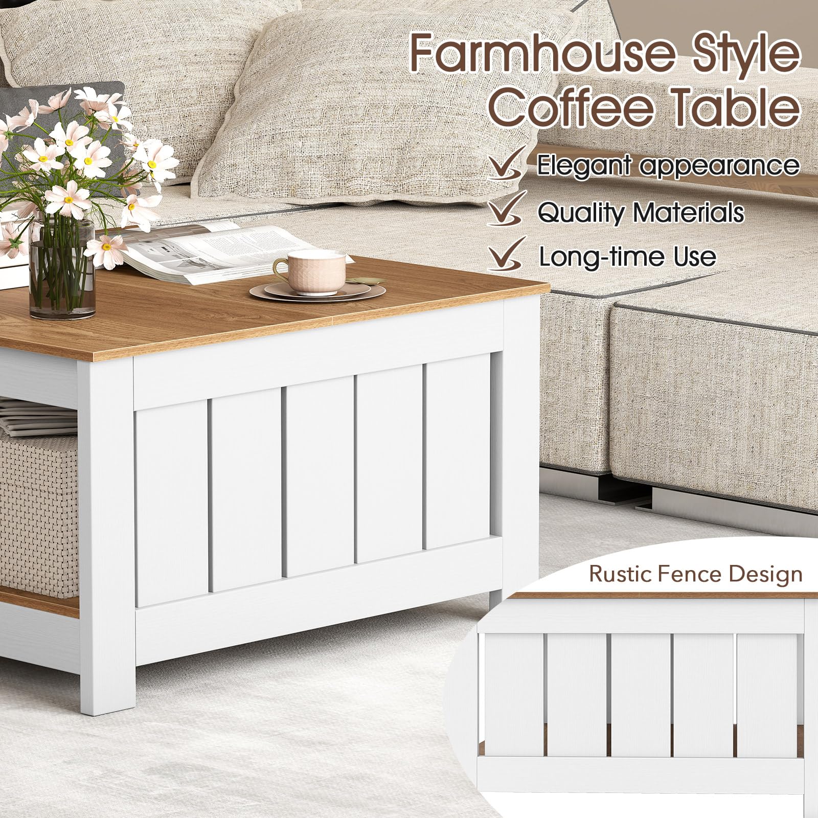 This square coffee table combines both aesthetic appeal and functionality, providing sufficient storage space with its wide tabletop and open shelf. Meanwhile, this farmhouse style coffee table is designed with an elegant wood texture tabletop and rustic fence appearance, blending well with a variety of indoor decorations. It is a perfect addition to your study room, living room, office and reception room. Moreover, built on a sturdy structure with thickened boards, this 2-tier cocktail center table ensures stability. It keeps firm with robust supportive feet and anti-slip pads. You can also enjoy easy cleaning with its smooth surface and bottom clearance.