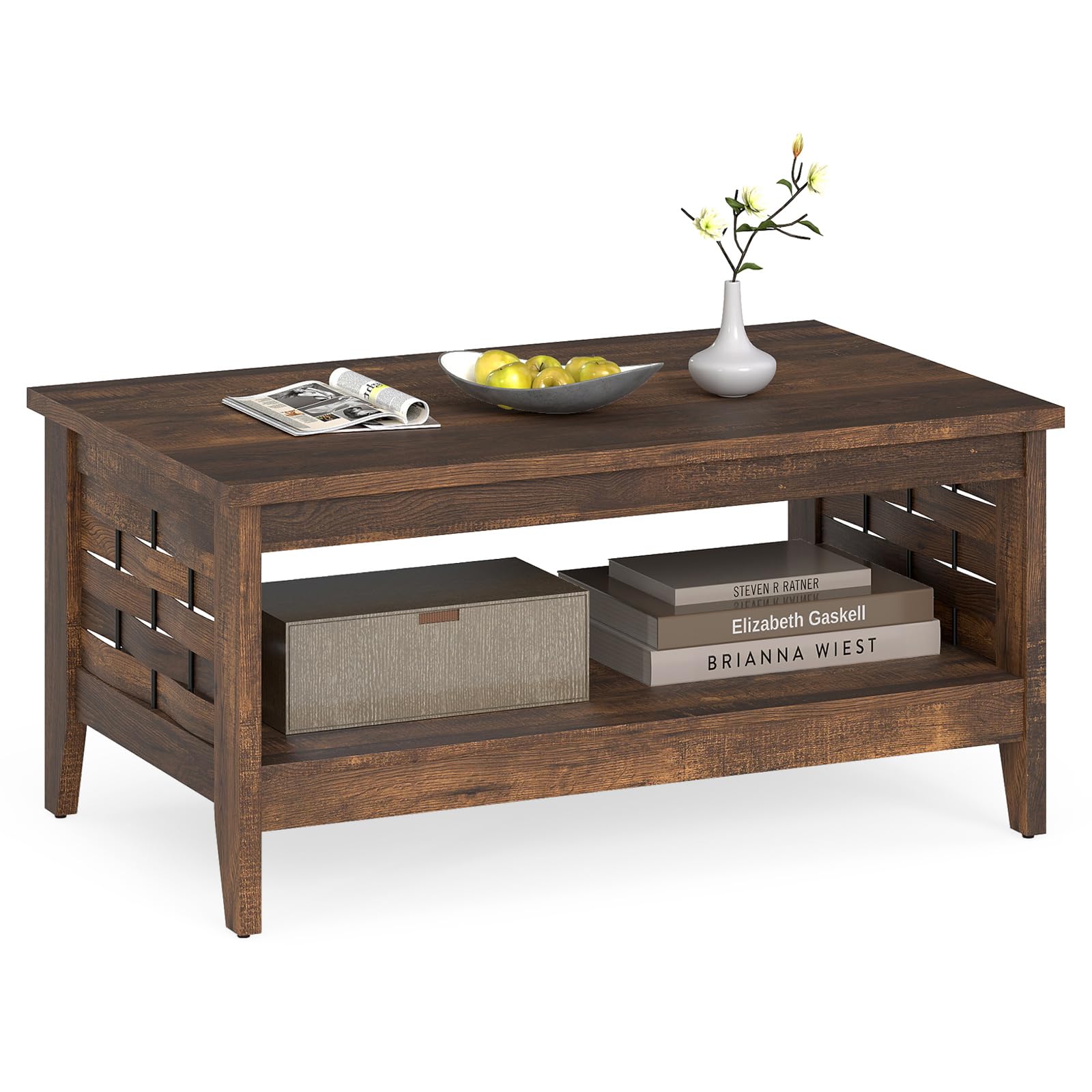 Transform your space with our chic and functional 2-tier coffee table. With its spacious top and handy lower shelf, organizing becomes effortless – say goodbye to clutter! The elegant woven accents and rustic charm will breathe new life into your room’s decoration, perfectly blending with both modern and farmhouse styles. Built to last with a thickened board and sturdy legs, this center table will stay steady and stunning. Cleaning? Just a quick wipe! Whether you’re hosting game nights, need a spot for your laptop, or a stylish stage for your tea sets, this versatile coffee table has got you covered. Don’t wait, elevate your home today!