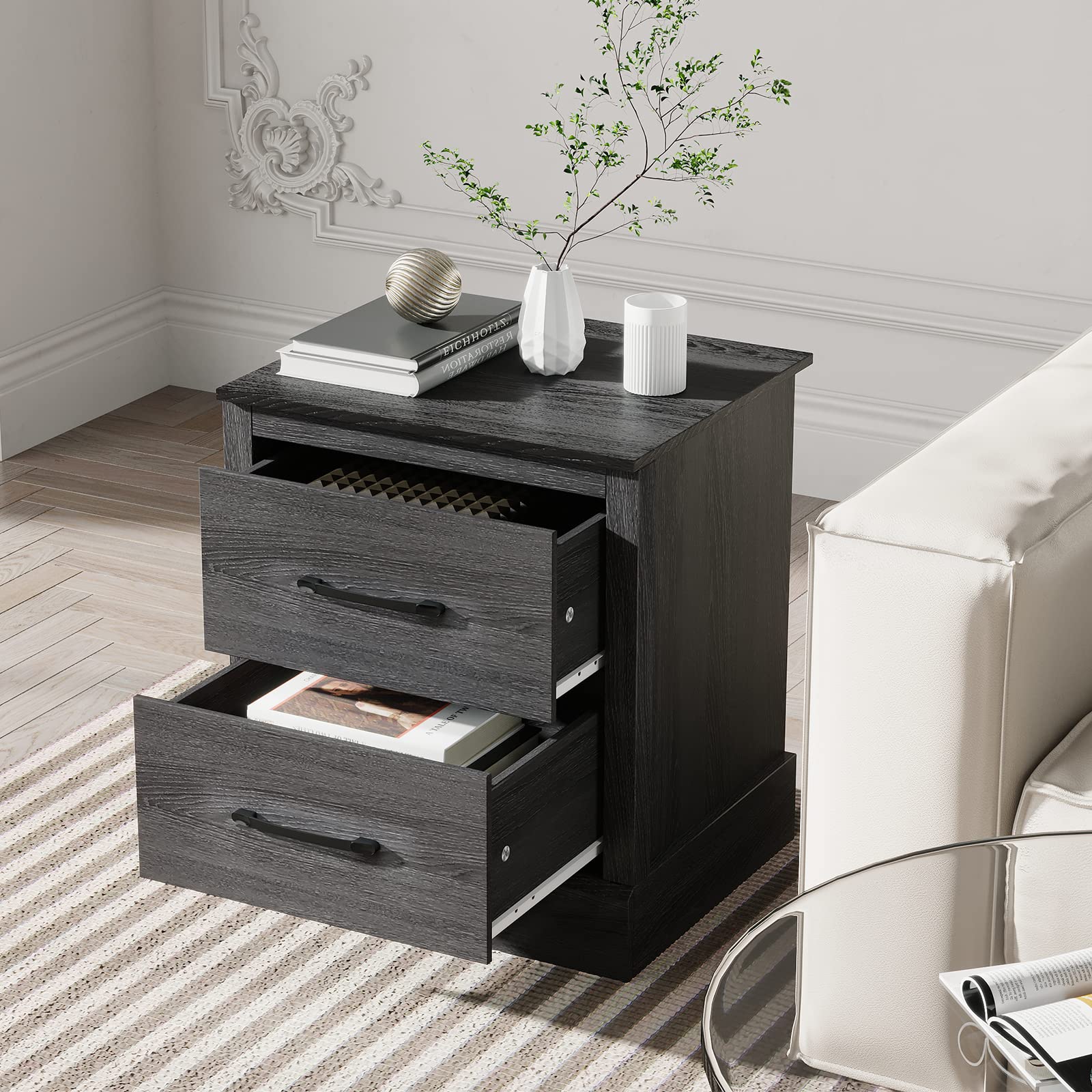 The well-made nightstand is compatible with various rooms that need storage and display space. The combination of wide tabletop and 2 slide-out drawers provides ample storage space for a variety of daily supplies, such as ornaments, photos and plants. More, durable board and wide bottom base also enhance strong support and stability for nightstand, leaving you no worry about the using reliability. And with classic farmhouse style, the bedside table adds refined beauty to multiple places, either for living room, bedroom, and study, etc.