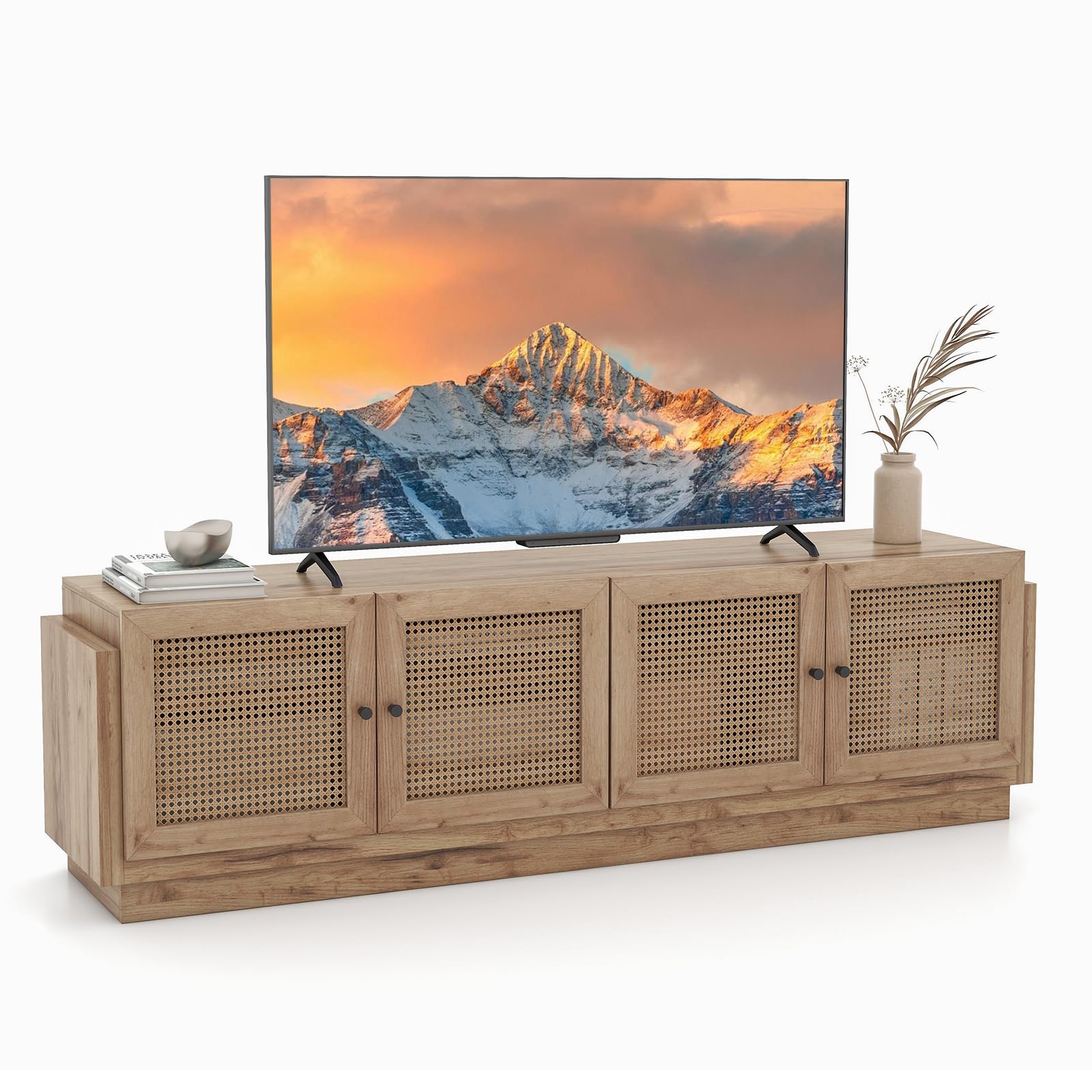 - Stylish Farmhouse Design: Embrace a charming farmhouse style with this TV stand, suitable for various room themes from contemporary to rustic. The authentic PE rattan front panels add a touch of laid-back elegance, making it a focal point in your living room or reception area.