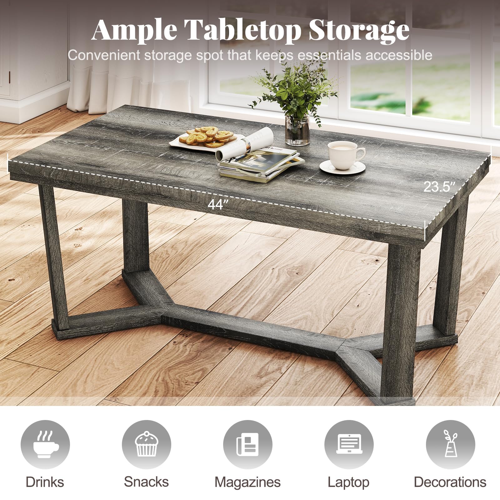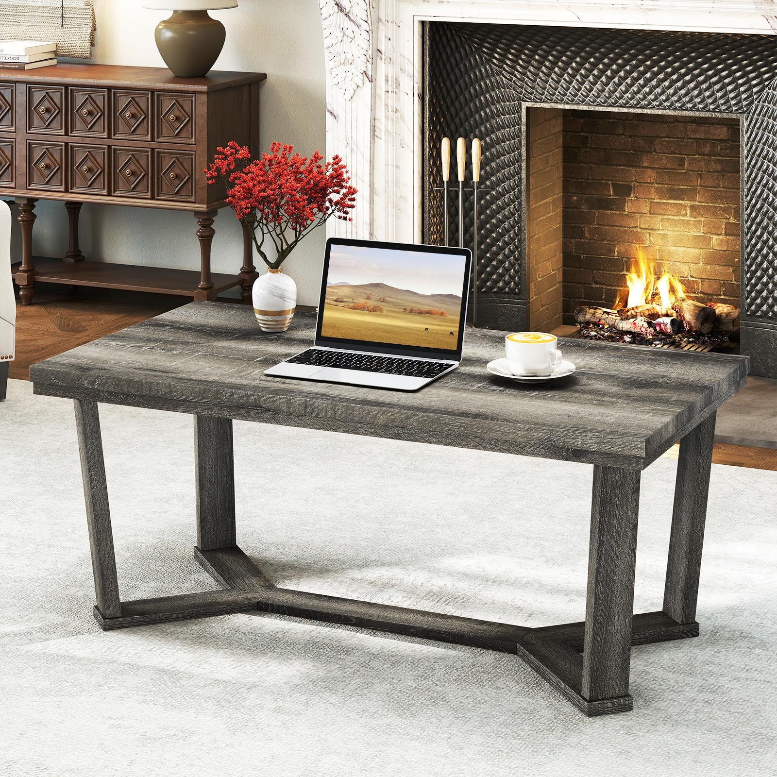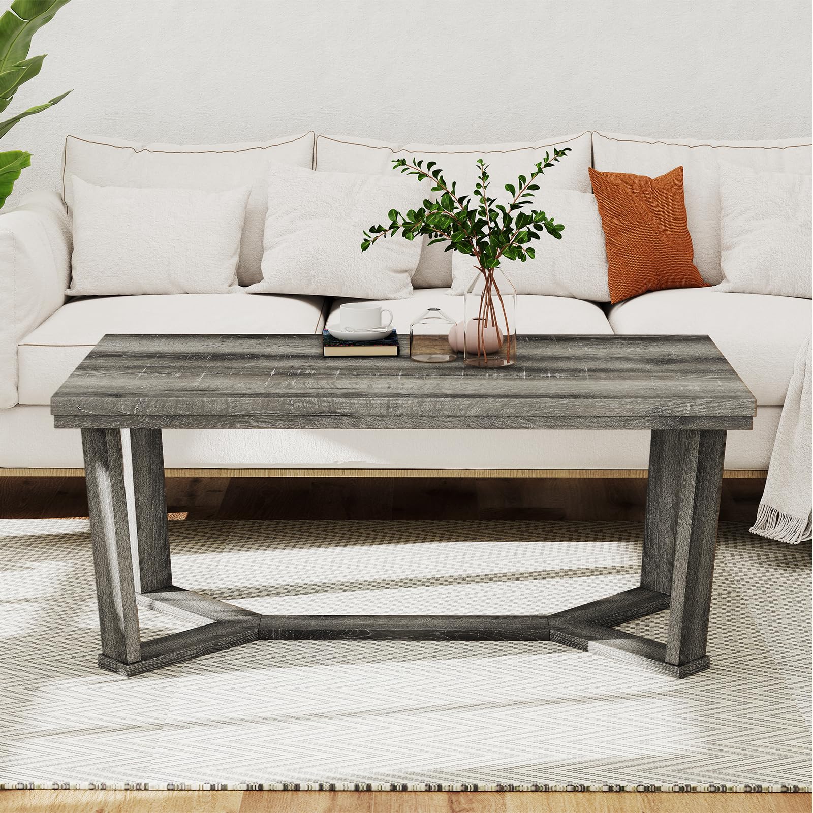 The coffee table provides ample tabletop storage for drinks, snacks, magazines, and decorations. The stable and sturdy structure features natural rubber wood. Its thick legs and cross-shaped base promote the load capacity up to 250 lbs. Its rustic farmhouse charm adds elegance and versatility, fitting seamlessly in living rooms, bedrooms, studies, or reception areas. Premium details, such as protective foot pads, rounded corners for safety, and sturdy triangle frames, enhance the table’s durability and functionality, making it a stylish and reliable centerpiece for a variety of spaces.