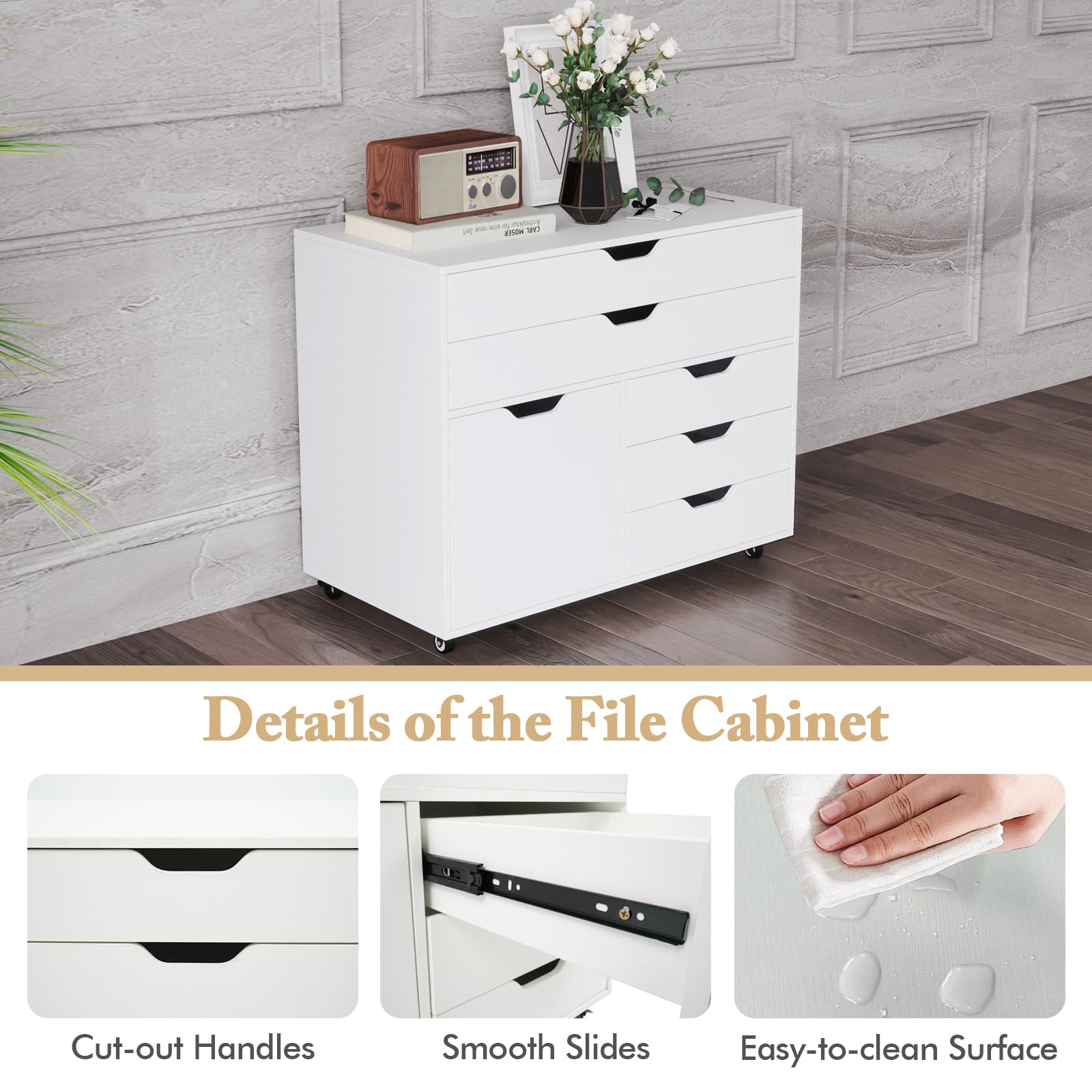 - [Easy to Move & Fix]: Effortlessly transport the office cabinet with five 360°swivel universal wheels, and lock it in place with 2 lockable wheels for stability. Your belongings will always be secure.