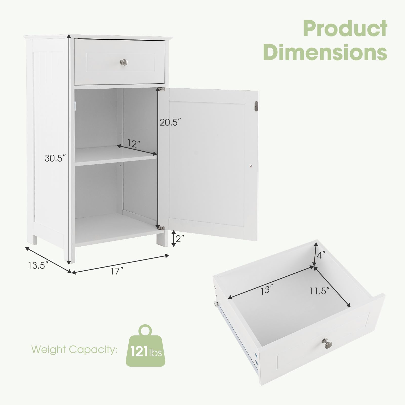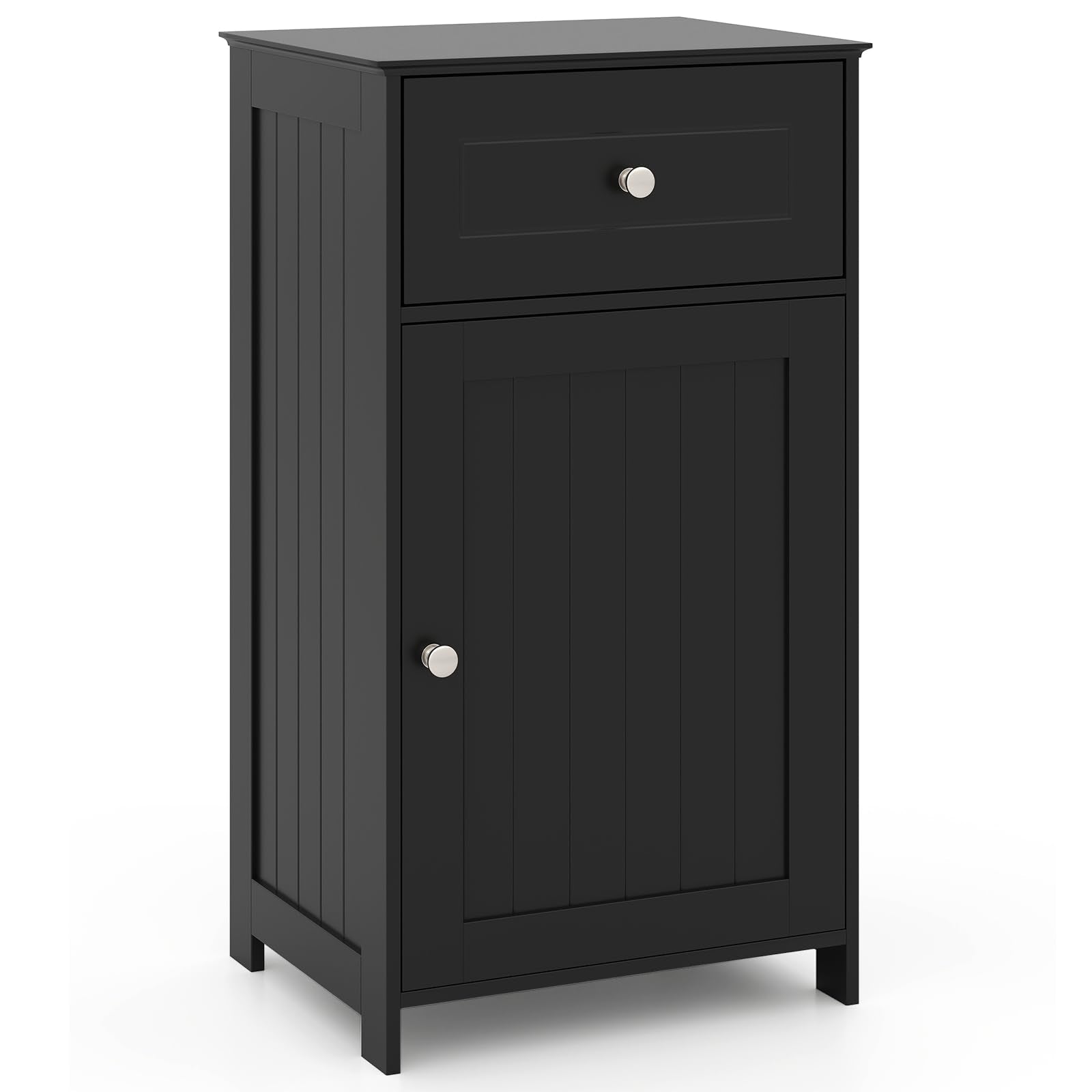 Transform your bathroom from a messy spaces to organized havens with this versatile storage cabinet! Designed to meet all your storage needs, this cabinet features a single door and a spacious drawer, offering ample space to declutter your bathroom. What’s more, the adjustable shelves inside the cabinet can be easily customized to accommodate items of various sizes, whether it's papers, toiletries, or cosmetics. In addition, safety is paramount, and this cabinet incorporates an anti-tipping device and stable foot design, ensuring your peace of mind. With its modern and sleek design, this storage cabinet effortlessly complements any interior decor. Bid farewell to messy spaces and embrace a tidier and more stylish environment.