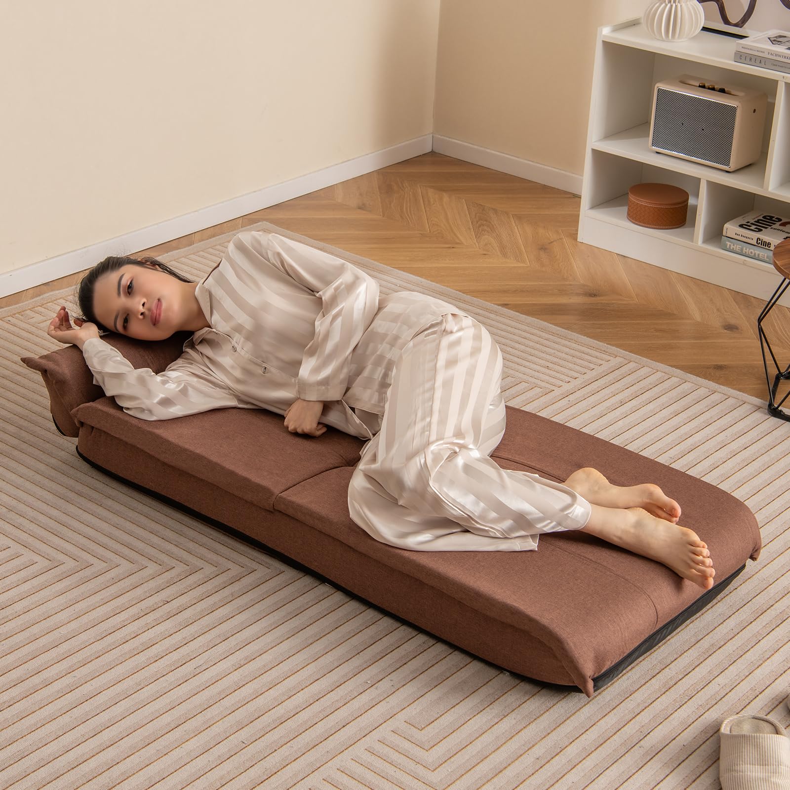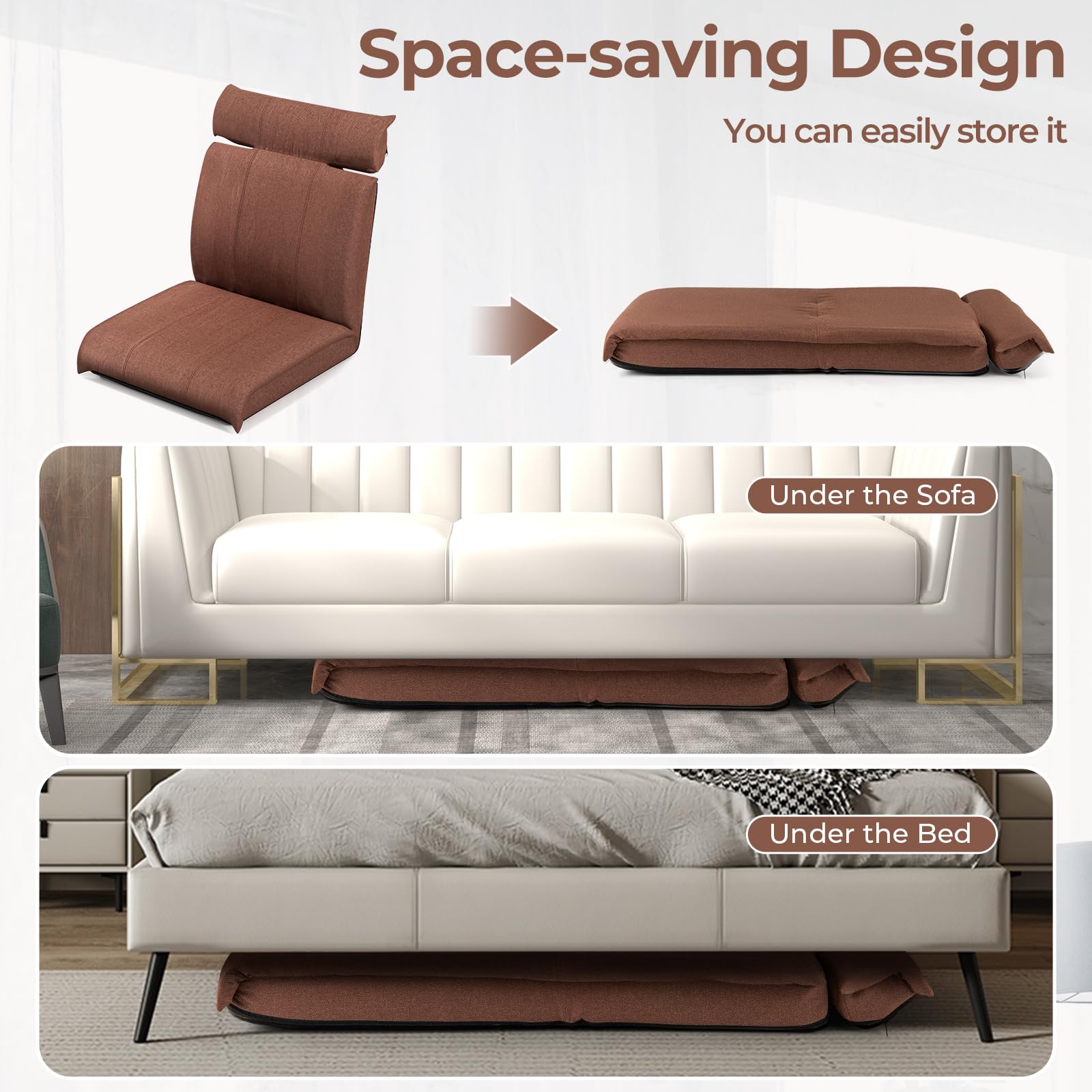 Discover unparalleled comfort and versatility with our innovative folding floor chair. Customize your seating experience with the 14-level adjustable backrest and 5-level adjustable headrest, ensuring optimal positioning for reading, gaming, or working. The soft linen fabric upholstery, along with plush sponge filling, provides a cozy and relaxing seating experience that ensures lasting comfort and support. Supported by a heavy-duty metal frame, this chair offers a stable foundation capable of accommodating up to 330 lbs. Transforming effortlessly into a floor chair, lounger, or bed, this versatile piece is suitable for any room in your home, from the living room to the dorm. The sleek and modern design adds a stylish touch, while the space-saving flat design allows for easy storage when not in use. Elevate your relaxation experience with this multi-functional and dependable floor chair.