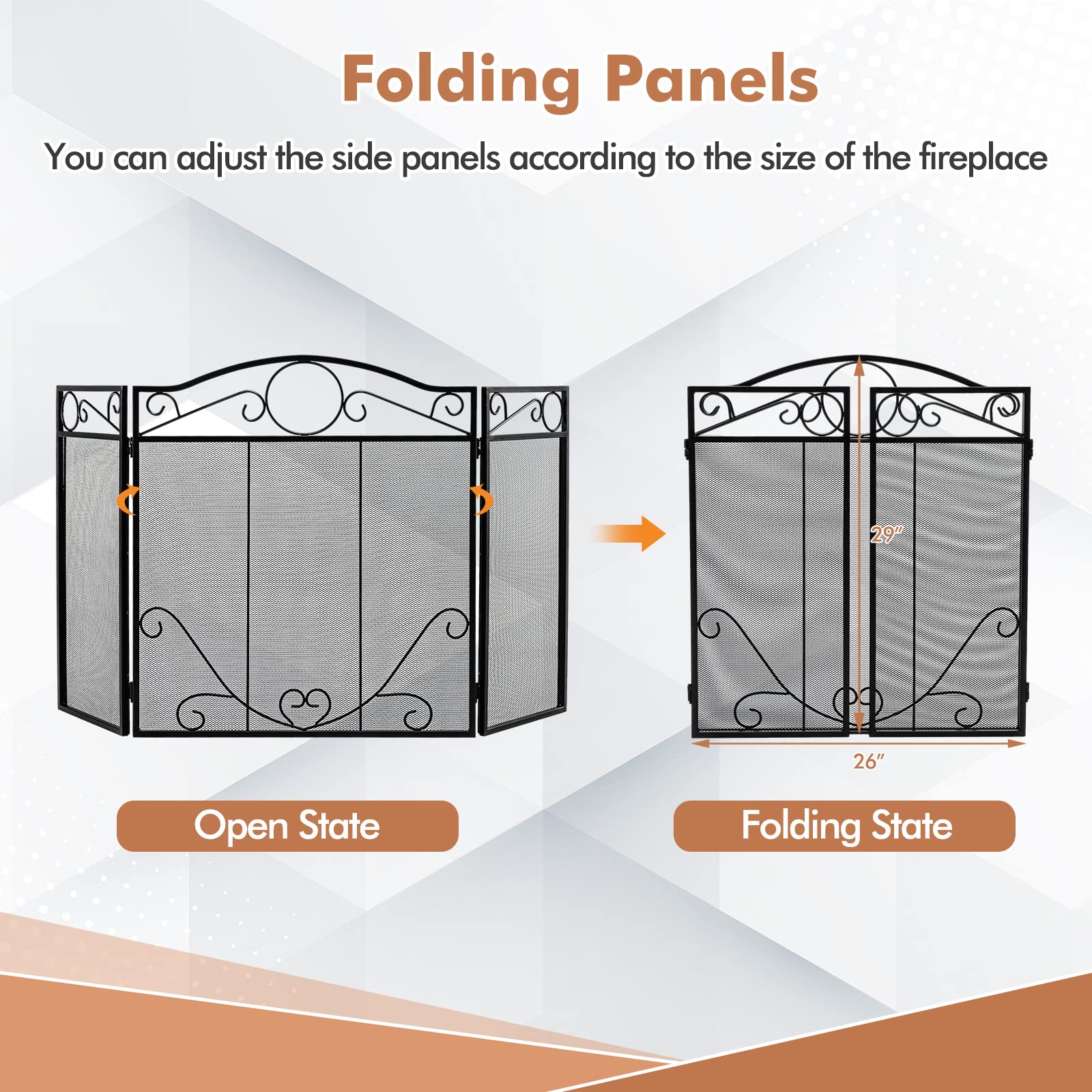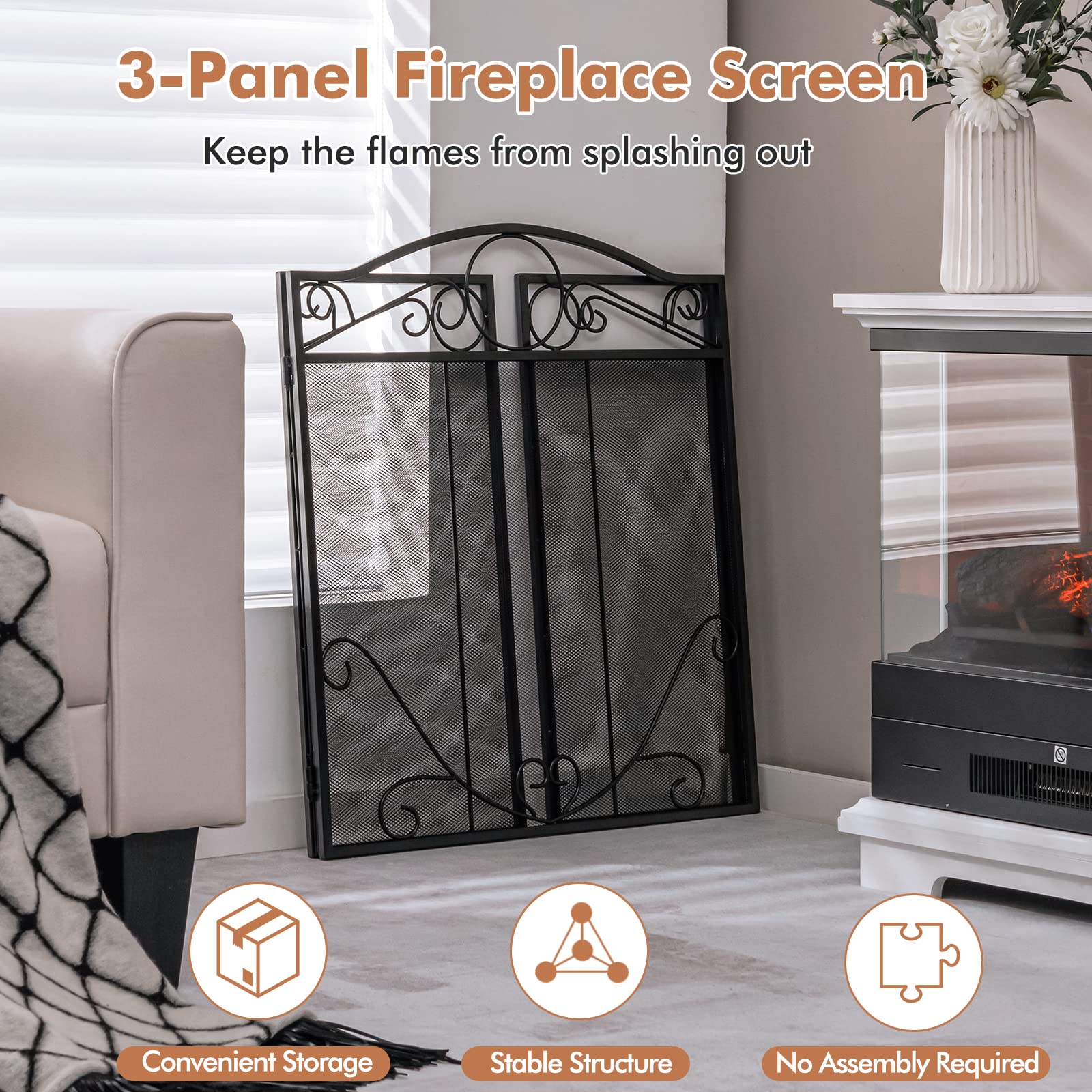 [50 x 29 Inch Fireplace Screen]: Giantex 3 panels large fireplace screen can completely surround burning logs, helping to prevent the open flames and embers from popping out to avoid accidental fires. With excellent stability, it will offer a safer environment for your children, pets or furniture by the fireside.