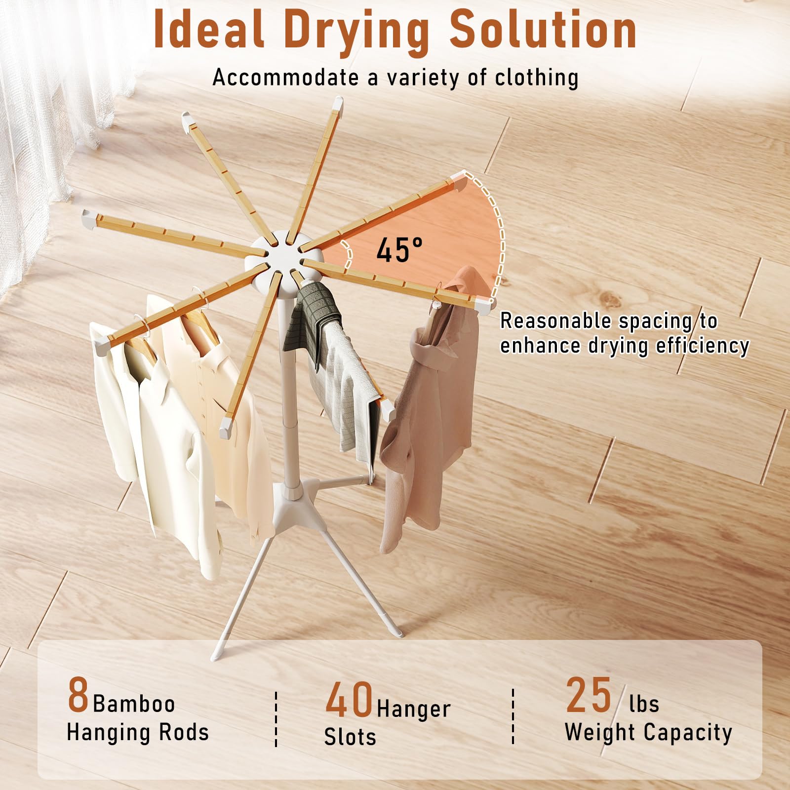 Featuring 8 bamboo rods and 40 hanger slots, this foldable drying rack holds a wide variety of garments, offering both “hang to dry” and “lay flat to dry” options. Each rod folds and unfolds smoothly to adapt to your space, making this portable drying rack a seamless fit for balconies, laundry rooms, or other indoor areas. Constructed on 4 metal legs with anti-slip pads, the laundry hanger dryer ensures stability throughout use. Its lightweight, collapsible design allows for convenient storage and hassle-free transport, ideal for RV trips beyond indoor use.
