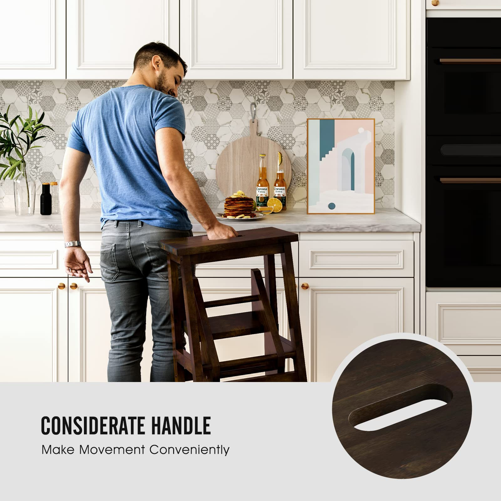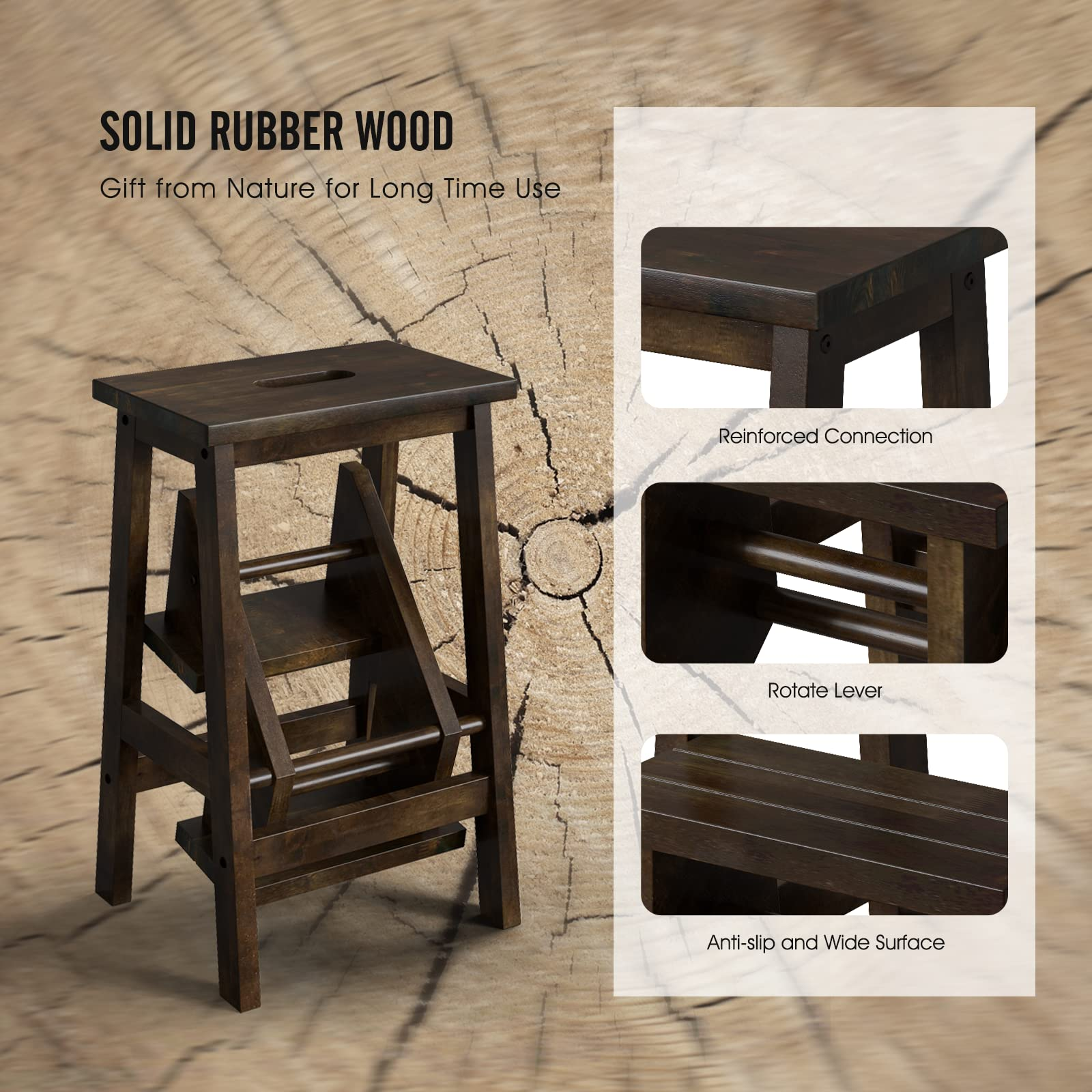 - Solid Rubber Wood: Constructed of solid rubber wood, this multifunctional step stool not only ensures its long service time but also comes with a strong loading capacity of up to 200 lbs for each pedal. Besides, the surface is painted, which allows you to clean it with ease.