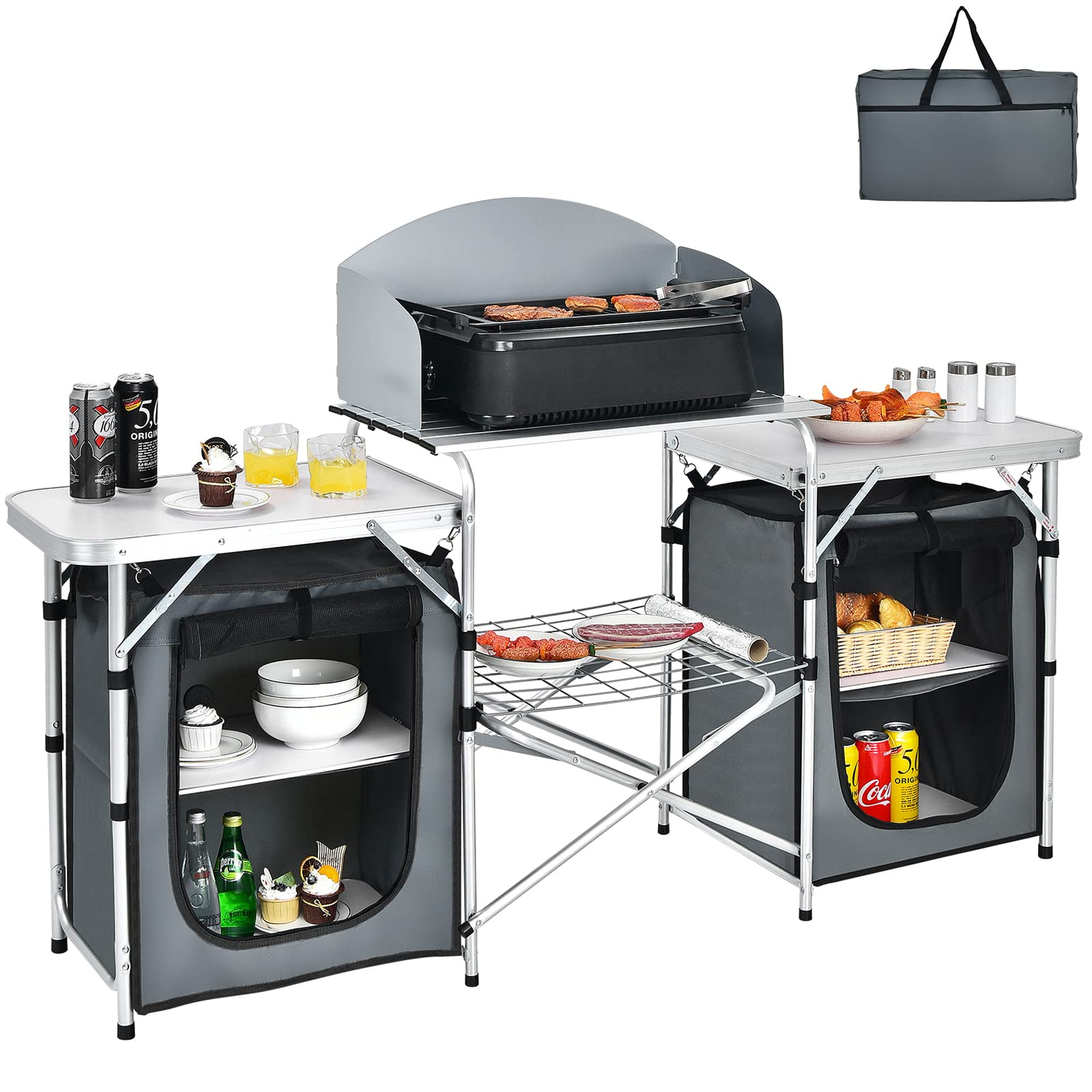 Giantex Folding Camping Kitchen Table w/ 2 Storage Organizer