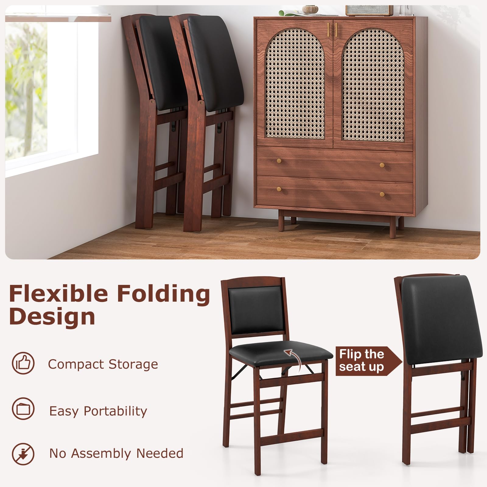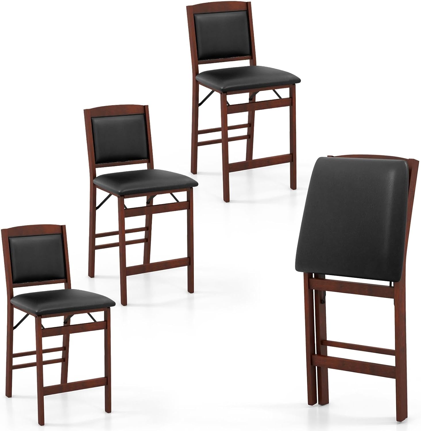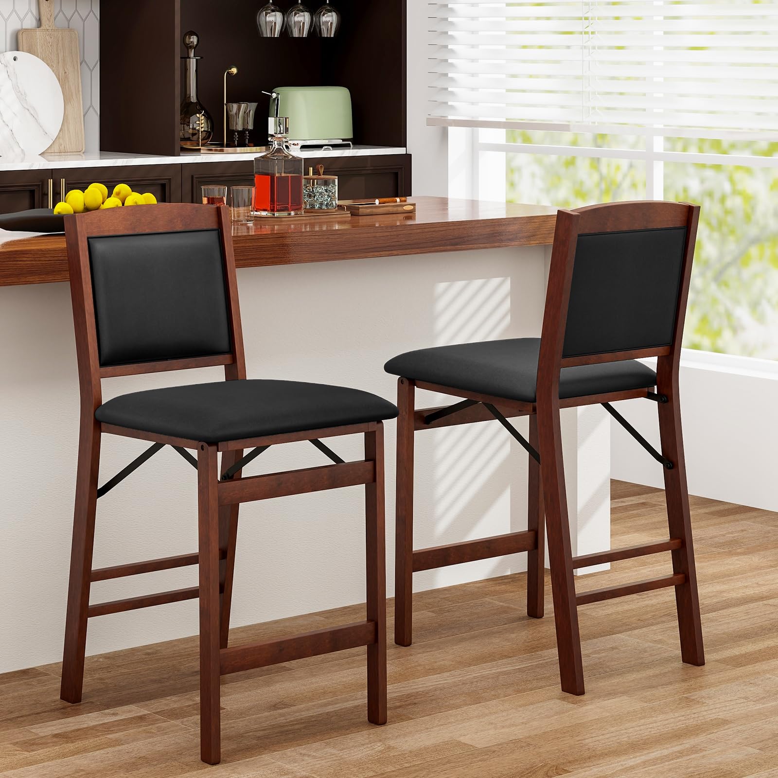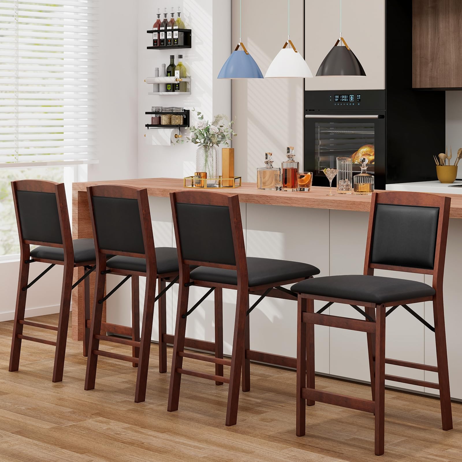 - [Comfortable Sitting]: Each folding bar stool is designed with cozy sponge padding on both inclined backrests and seats. Upholstered in skin-friendly, tear-proof PVC leather, the counter height bar stool set provides unparalleled comfort and optimal durability.