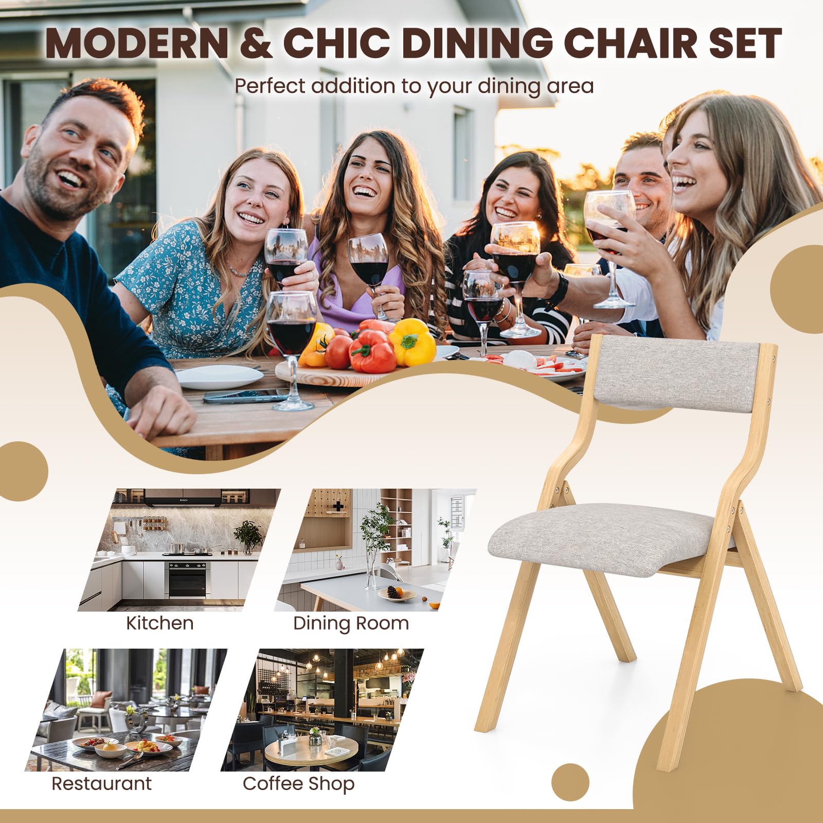 Giantex Folding Dining Chair Set of 2, No Assembly Folding Chairs w/Linen Padded Seats