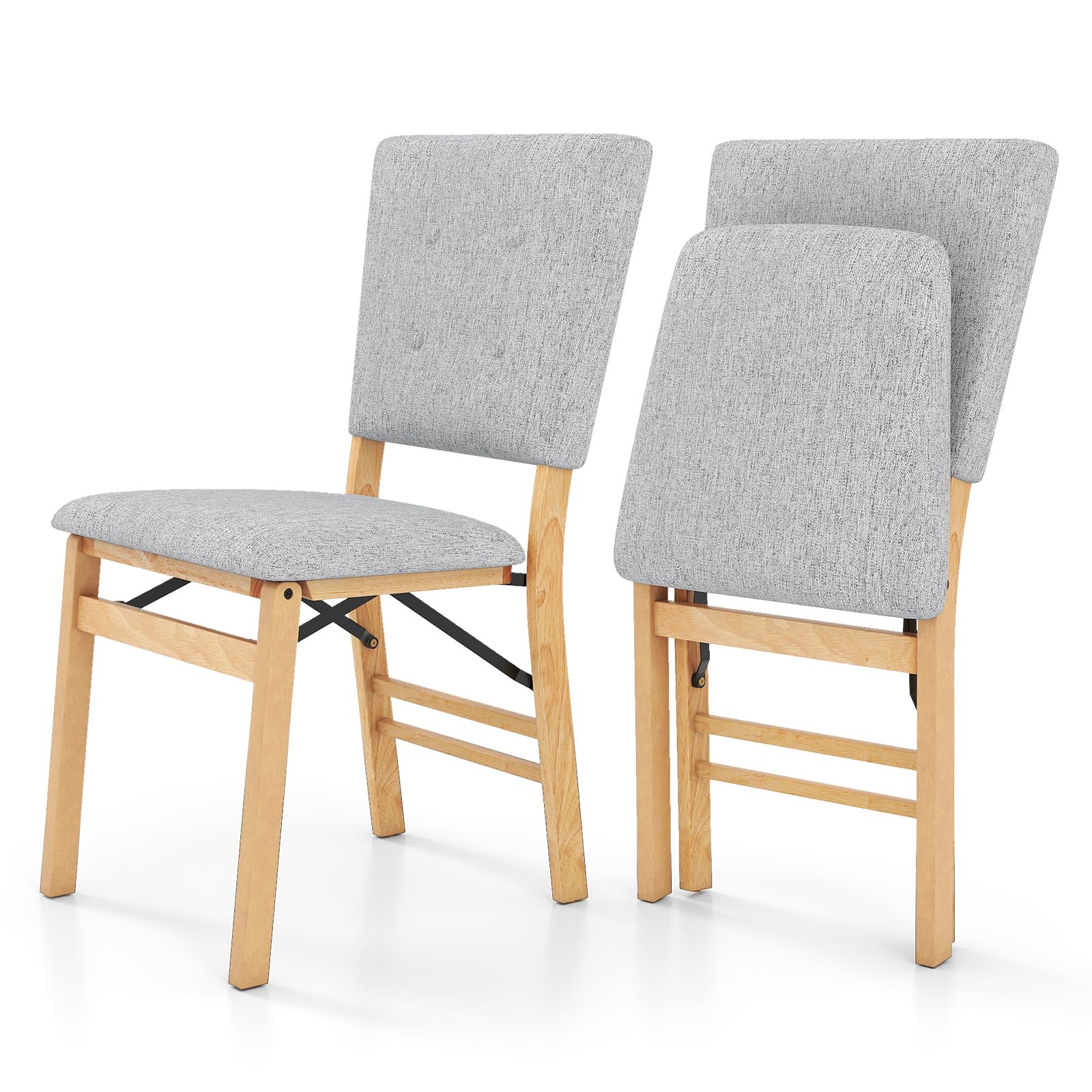 These upholstered dinette chairs combine both comfort and practicality. Crafted with a natural rubber wood frame, they offer sturdy support for up to 353 lbs, enhanced by non-slip foot pads and a reinforced crossbar. The seats and backrests are wrapped in soft sponge cushions covered with wear-resistant, skin-friendly linen fabric for a gentle, comfortable touch during long meals. When not in use, the chairs fold compactly for easy storage in tight spaces and their lightweight design makes them simple to move. These chairs are suitable for various settings like living rooms, kitchens, or restaurants, seamlessly blending into any interior.