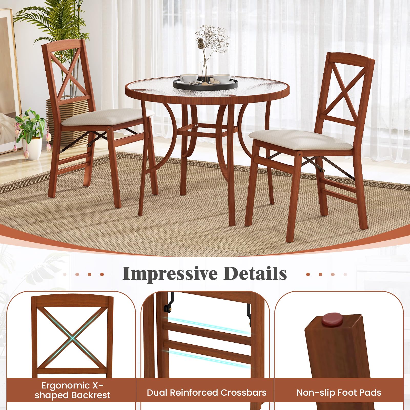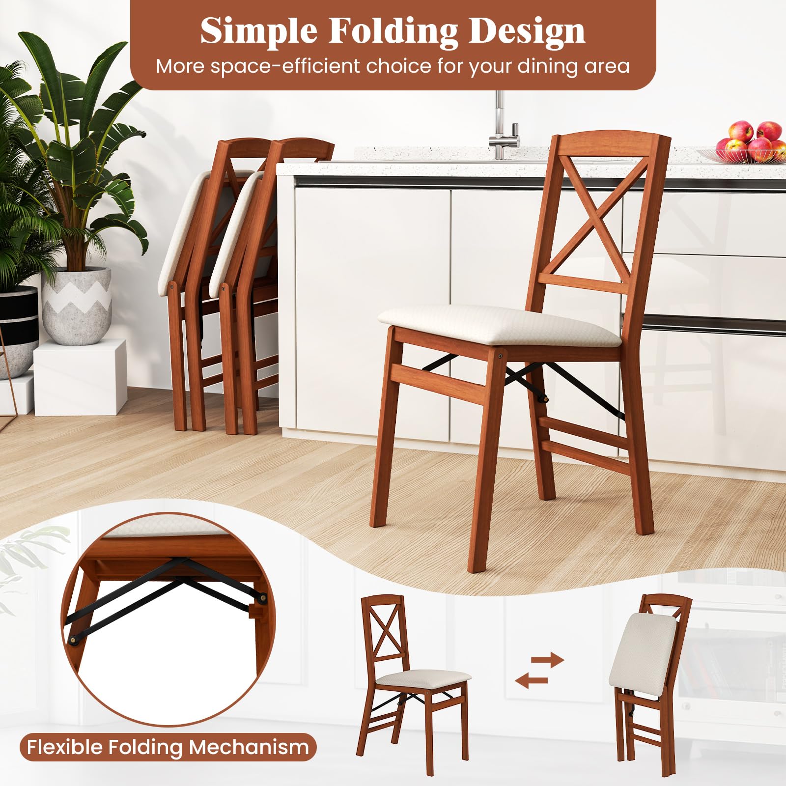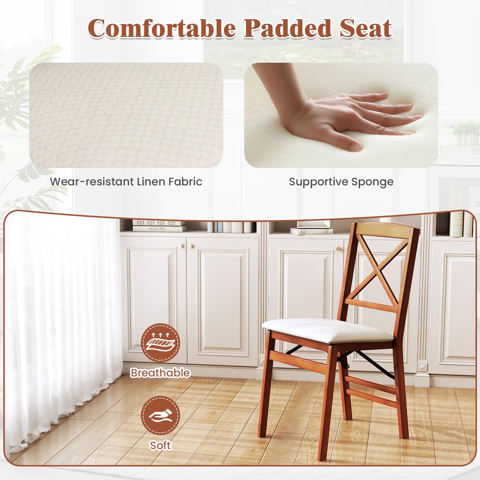 Crafted with rubber wood, the frame of our dining chair stands as a testament to superior sturdiness and longevity. The X-shaped of our dining chair is not just a visual delight but serves a crucial purpose in providing ergonomic support to the sitter. The padded seat is covered with linen fabric, which is breathable for a cozy sitting experience. Additionally, the sponge filling further ensures fatigue is kept at bay even after extended use. The dining room chairs feature reinforced crossbars, ensuring a maximum load capacity of 400 lbs. Thanks to the folding design, the armless kitchen chair is a more space-efficient choice for your dining area. Moreover, there are impressive details like anti-slip pads, which will protect the floor from scuffs.