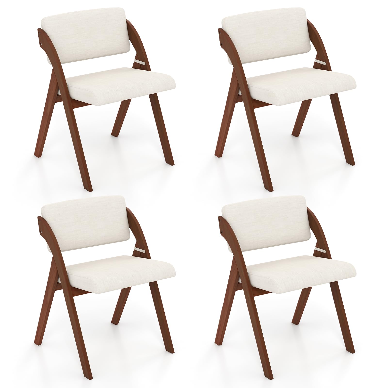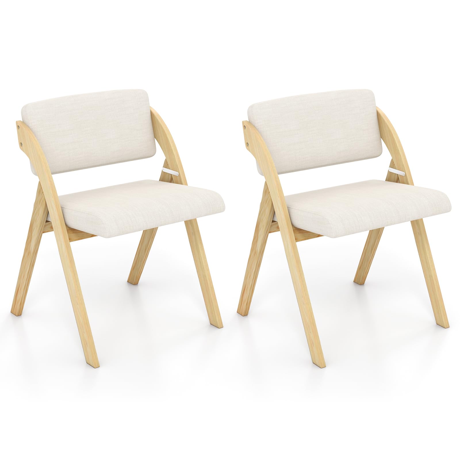 Transform your dining experience with this set of folding dining chairs that offer a perfect balance of luxury and convenience. Enjoy ultimate comfort as you sink into the thickly padded backrests and seats, upholstered in premium soft polyester fabric and filled with elastic sponge for unmatched support during lengthy meals or entertainment nights. The durable rubber wood legs provide both stability and sophistication, capable of holding up to 400 lbs. These chairs are designed with a practical folding mechanism, making storage and portability a breeze in modern living spaces where every inch counts. With a versatile and stylish appearance, they seamlessly integrate into various rooms beyond the dining area, such as the living room, study, or reception room. Pre-assembled and ready for immediate use, these chairs instantly elevate your home decor with their chic design and comfortable seating solution.