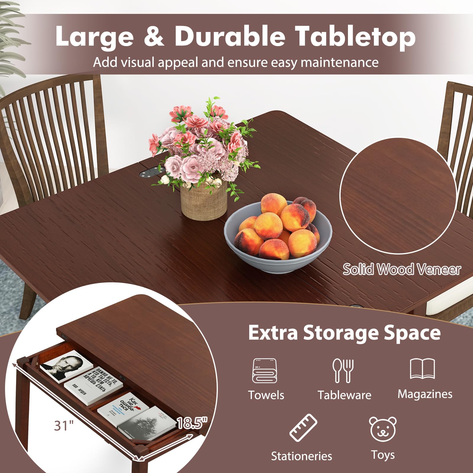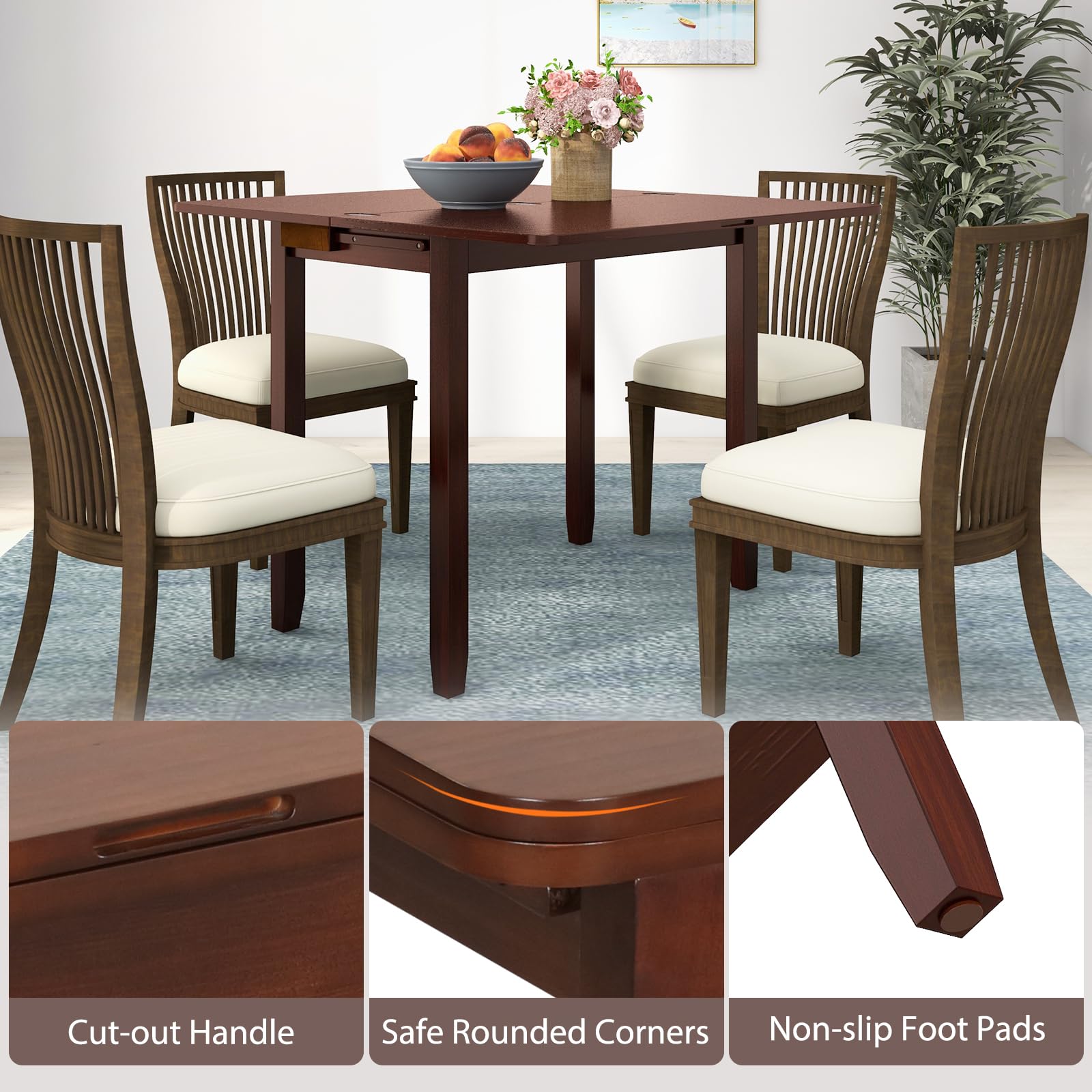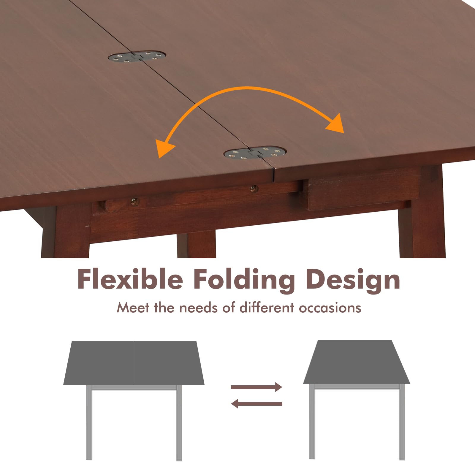 - Elegant Style Feasts Your Eyes: Featuring cherry brown finish, the dining room table will enhance the ambiance of dining room, kitchen, small apartment. Besides, the delicate wood veneer further enhances visual appeal, while ensuring easy maintenance. With detailed instruction, the folding dining table is easy to setup.