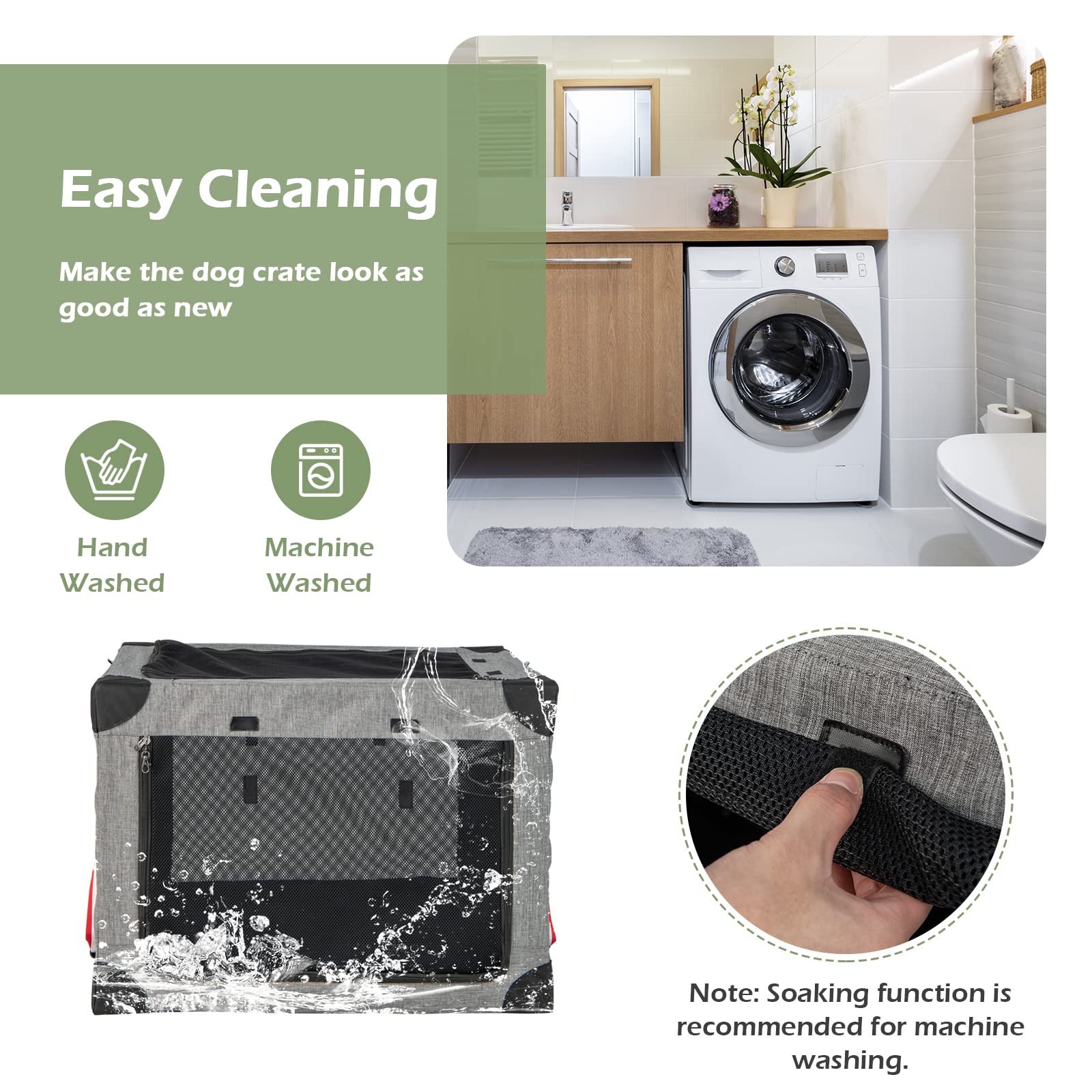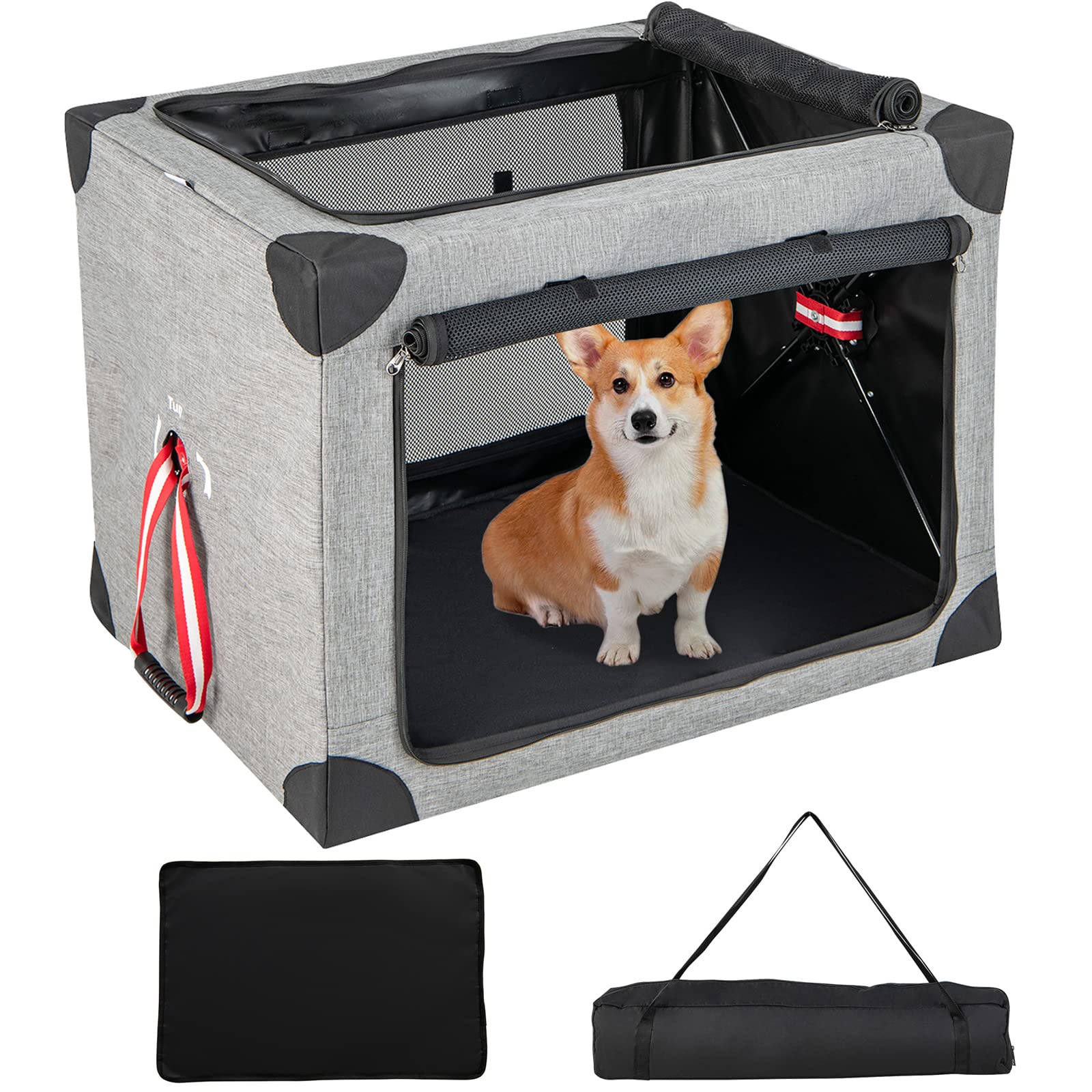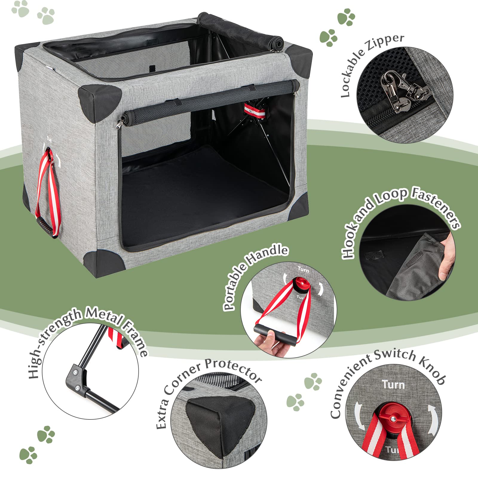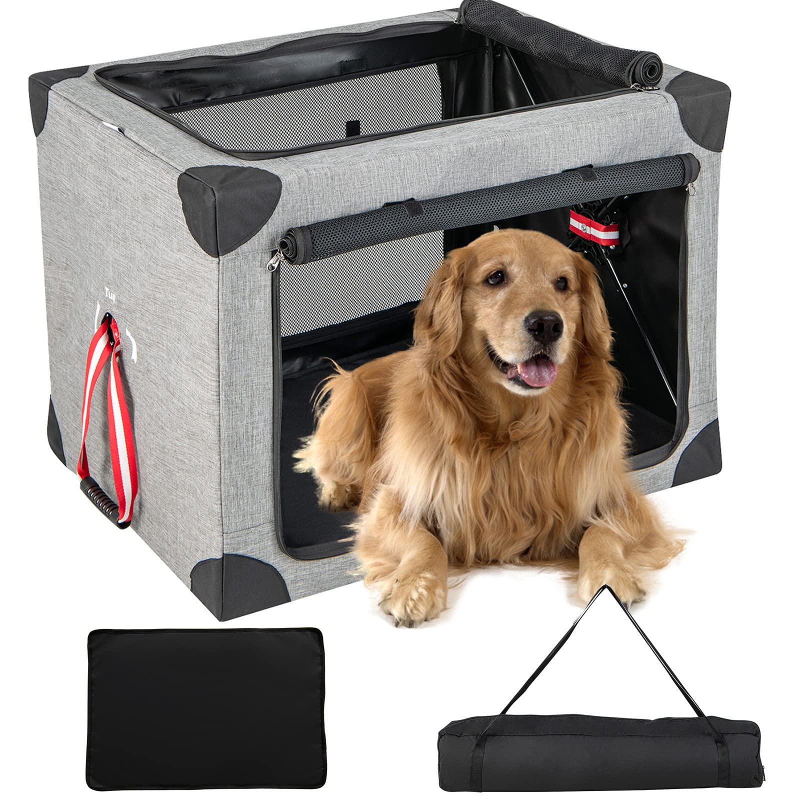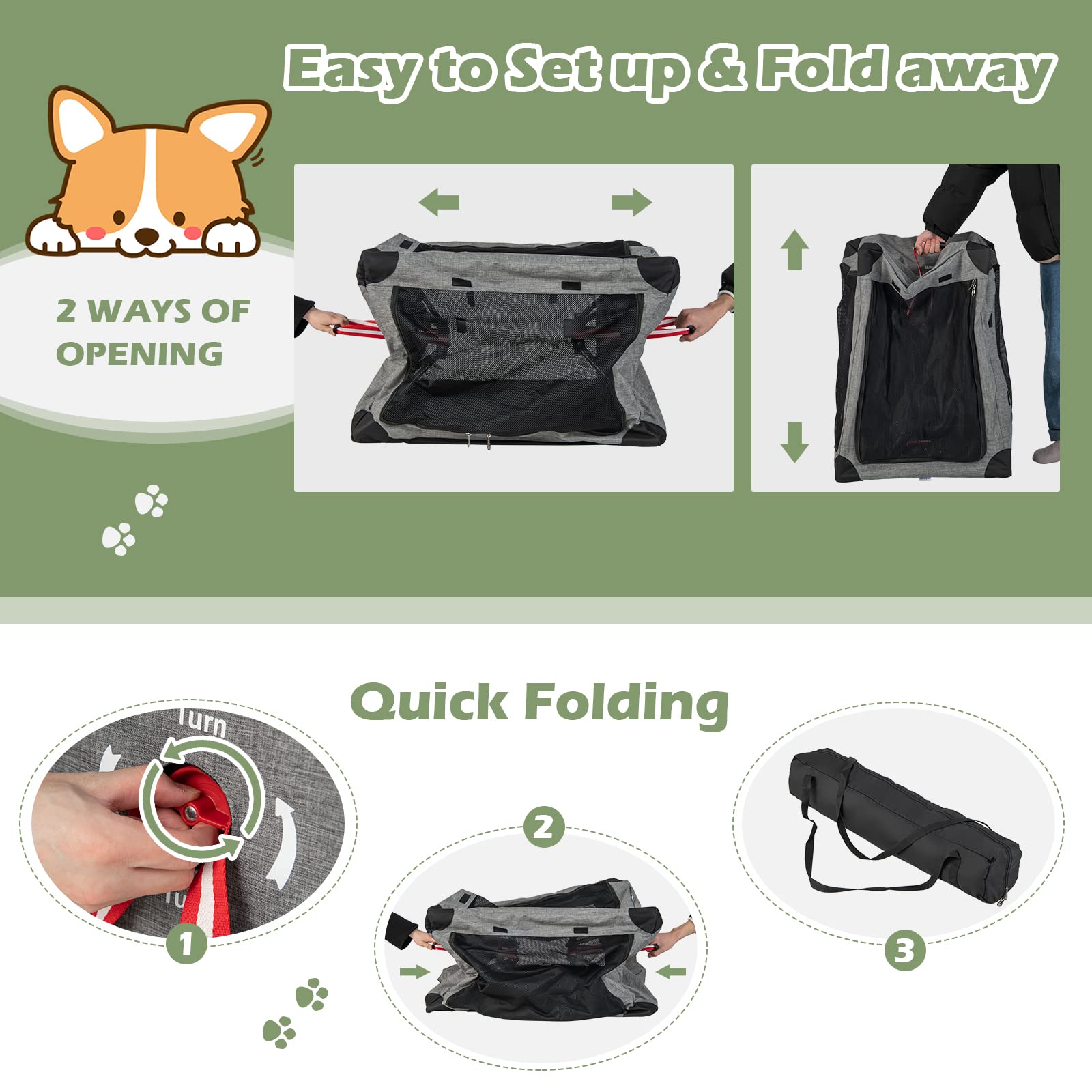 Giantex Folding Dog Soft Crate - Collapsible Pet Carry Case with 3 Mesh Doors