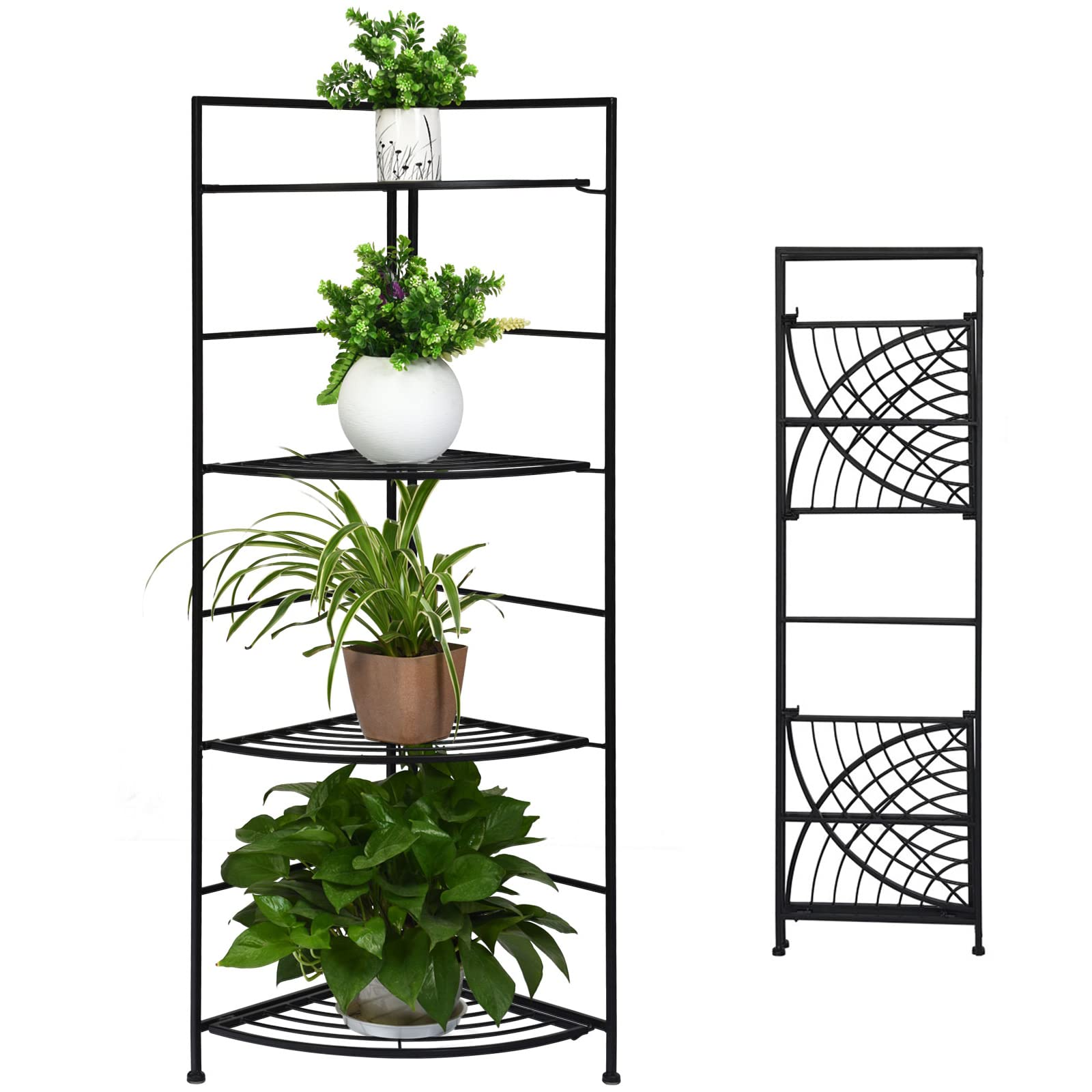 - ?Made of metal material with black powder coated finish, this flower pot holder shelf is not easy to rust and do well in outdoor.