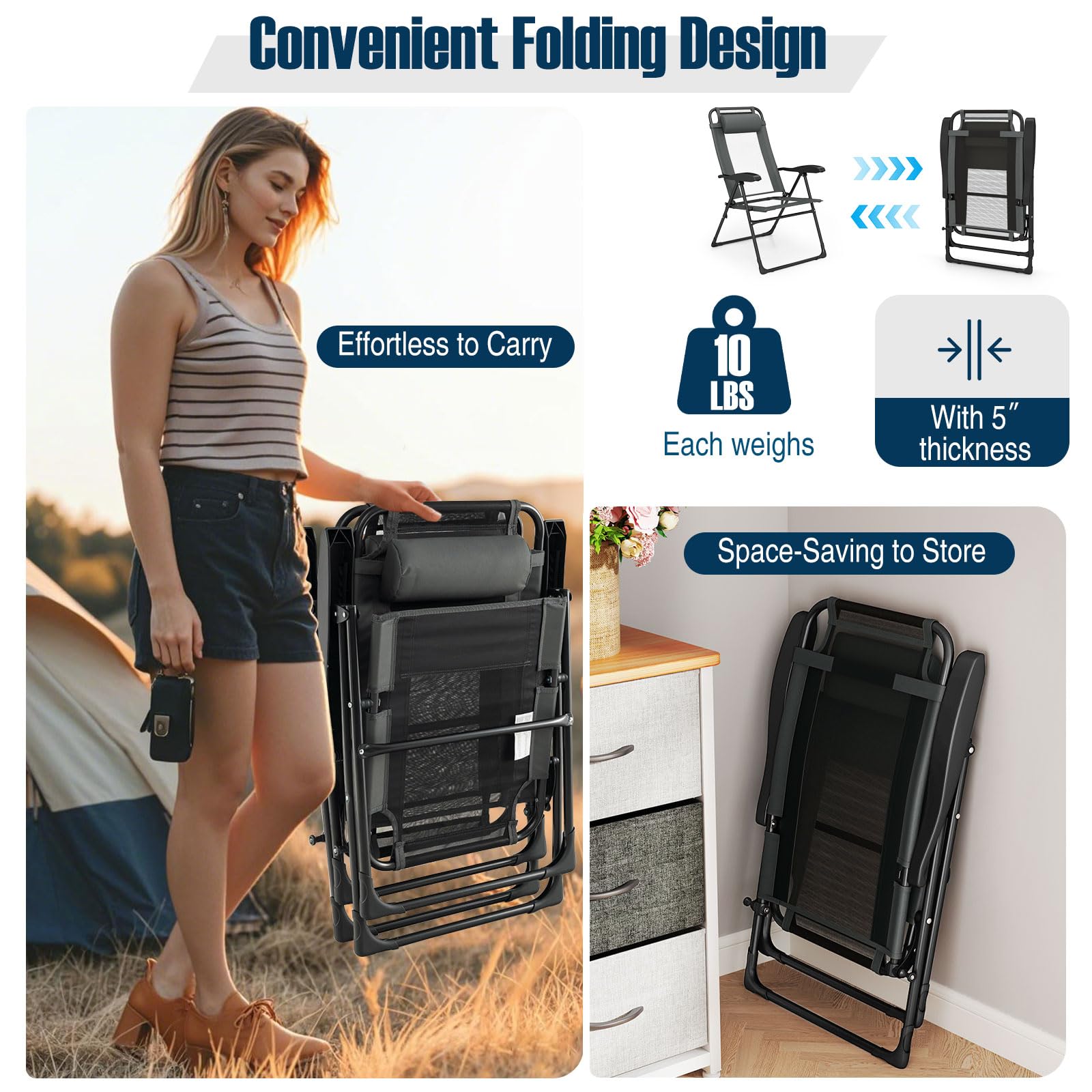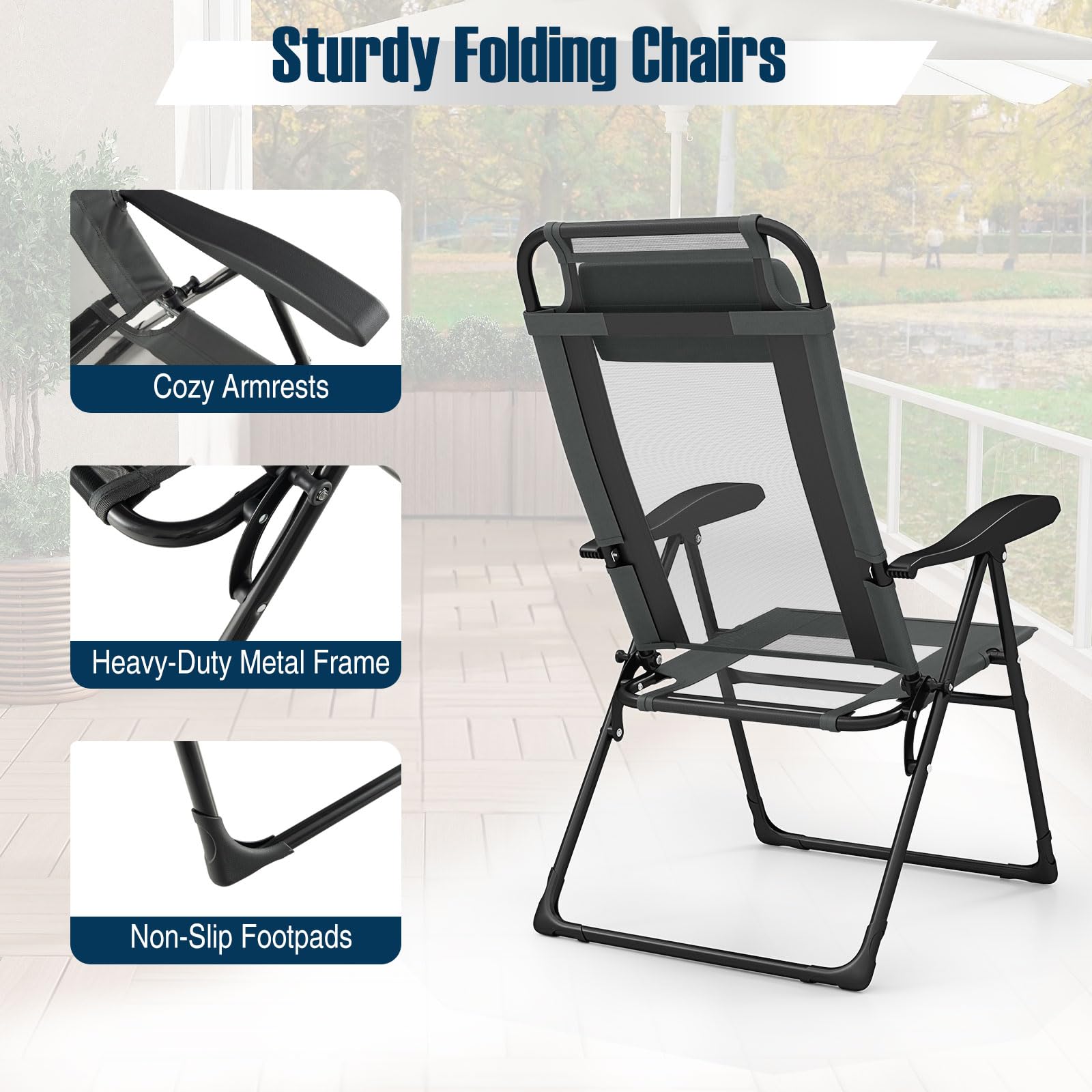 Experience ultimate relaxation with this premium folding patio chairs, tailored for your comfort and convenience.