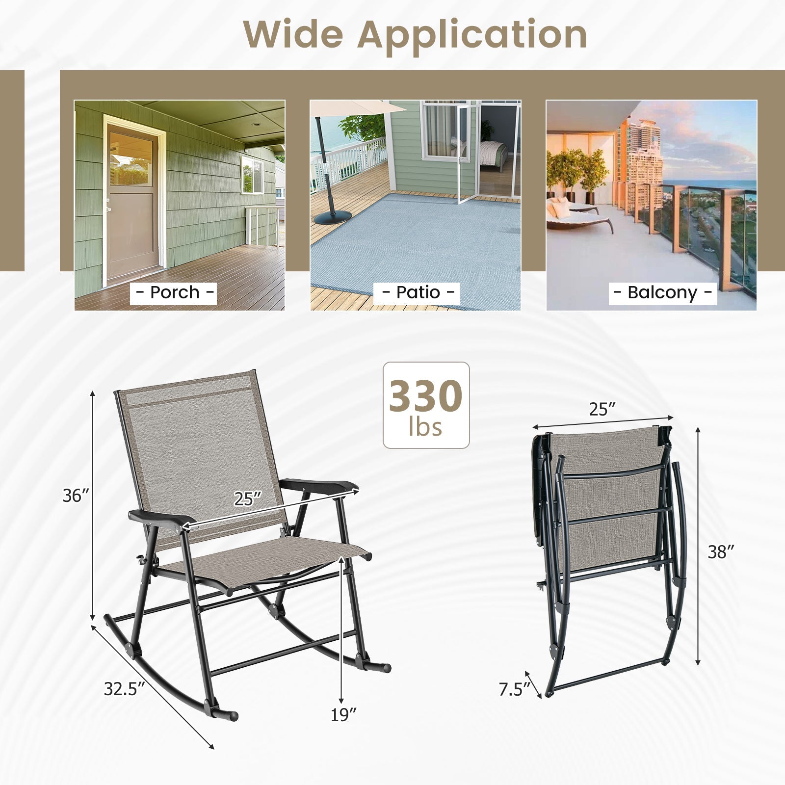 - [Rugged and Durable Construction]: Our porch rocker features a heavy-duty metal frame that can support up to 330 lbs, ensuring strength and stability. The rustproof powder-coated finish ensures durability for long-lasting outdoor use, while the stable triangular structure enhances overall stability.