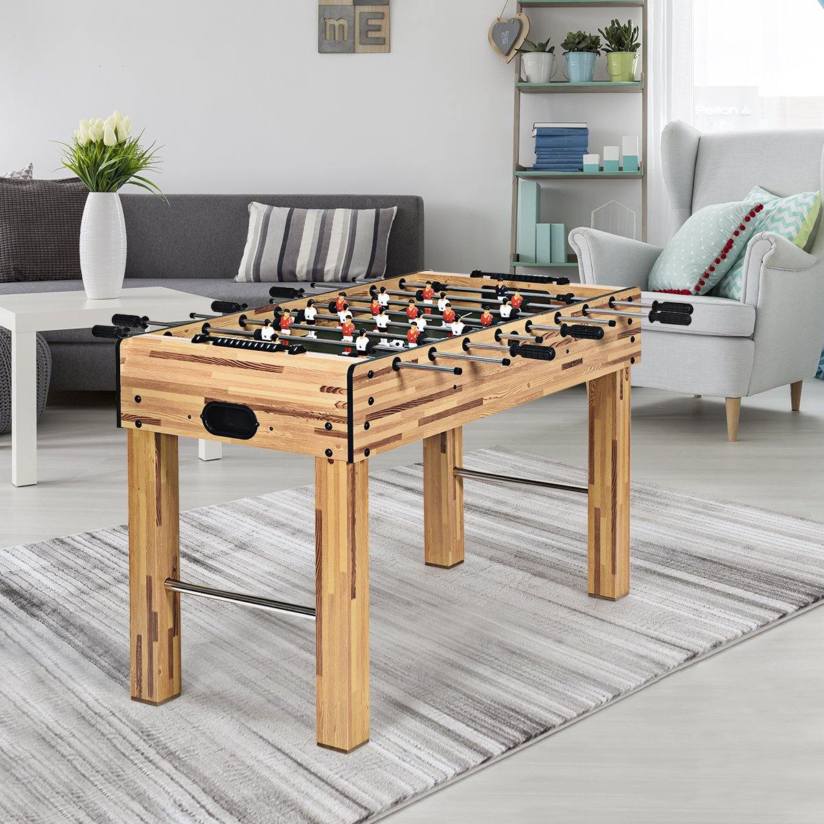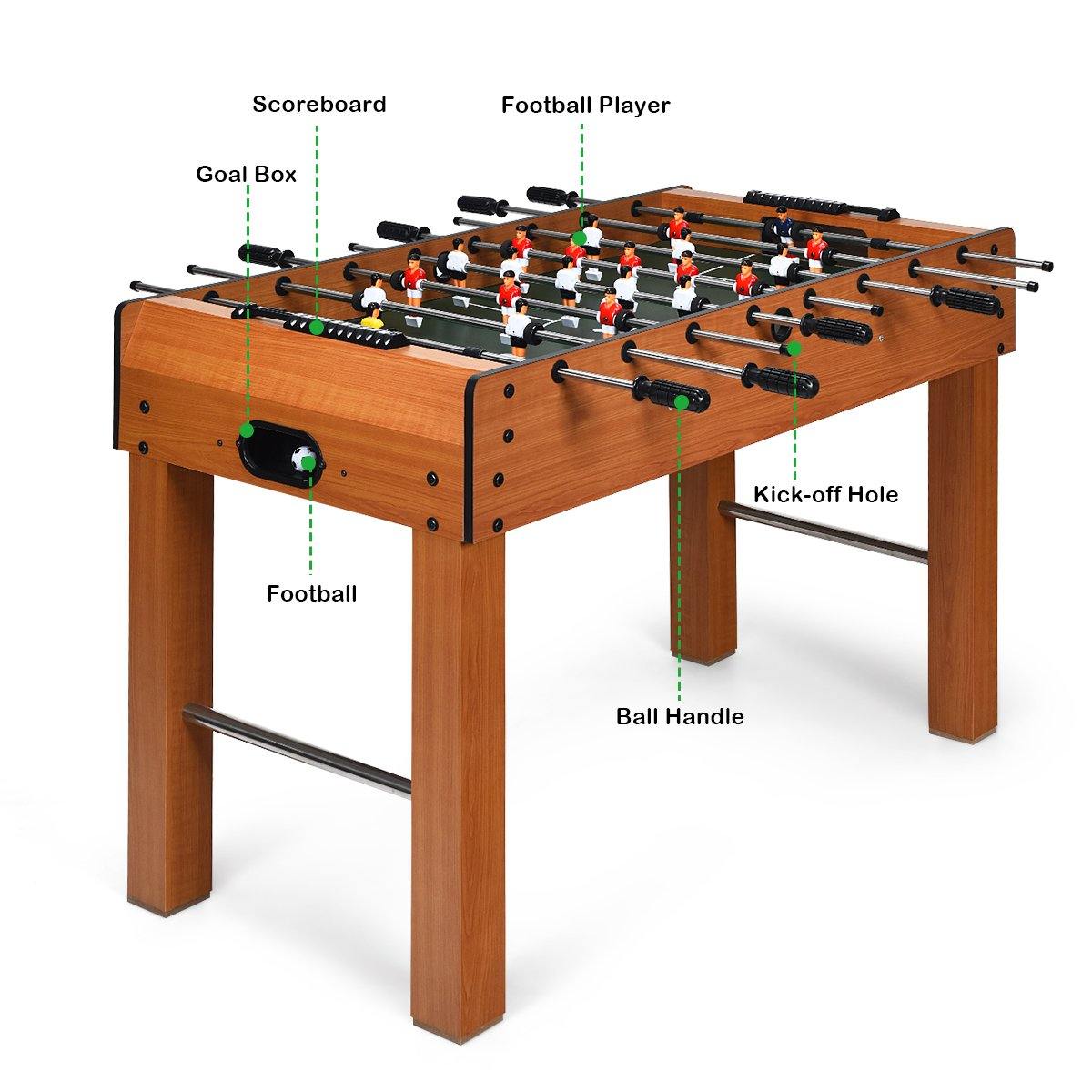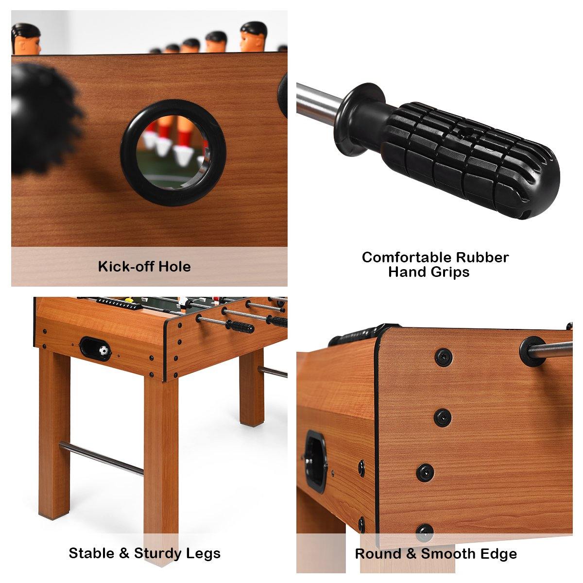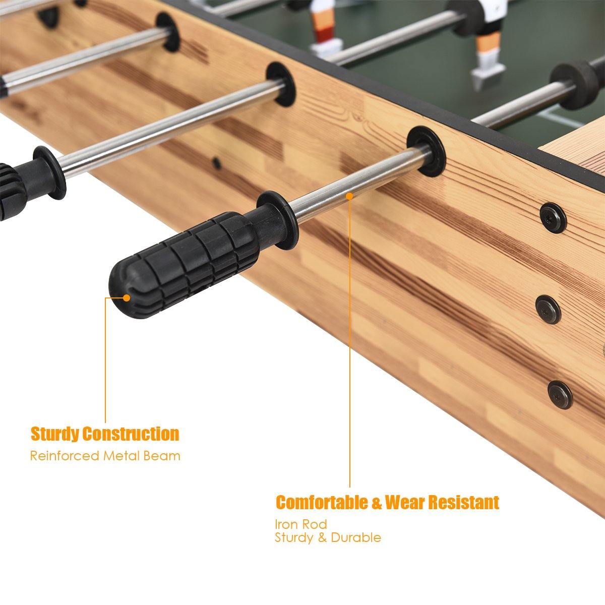 It simulates real football fields, players, and football to provide the best gaming experience. MDF construction is stable and makes this table doesn't shake when use. Stainless steel rods with textured handles rotates smoothly and are easy to grasp. With 48"length and 8 rods, this game table is suitable for 2-4 people to enjoy the interactive games at the same time. Featuring wood texture, it looks fashionable in the living room, game hall, etc.