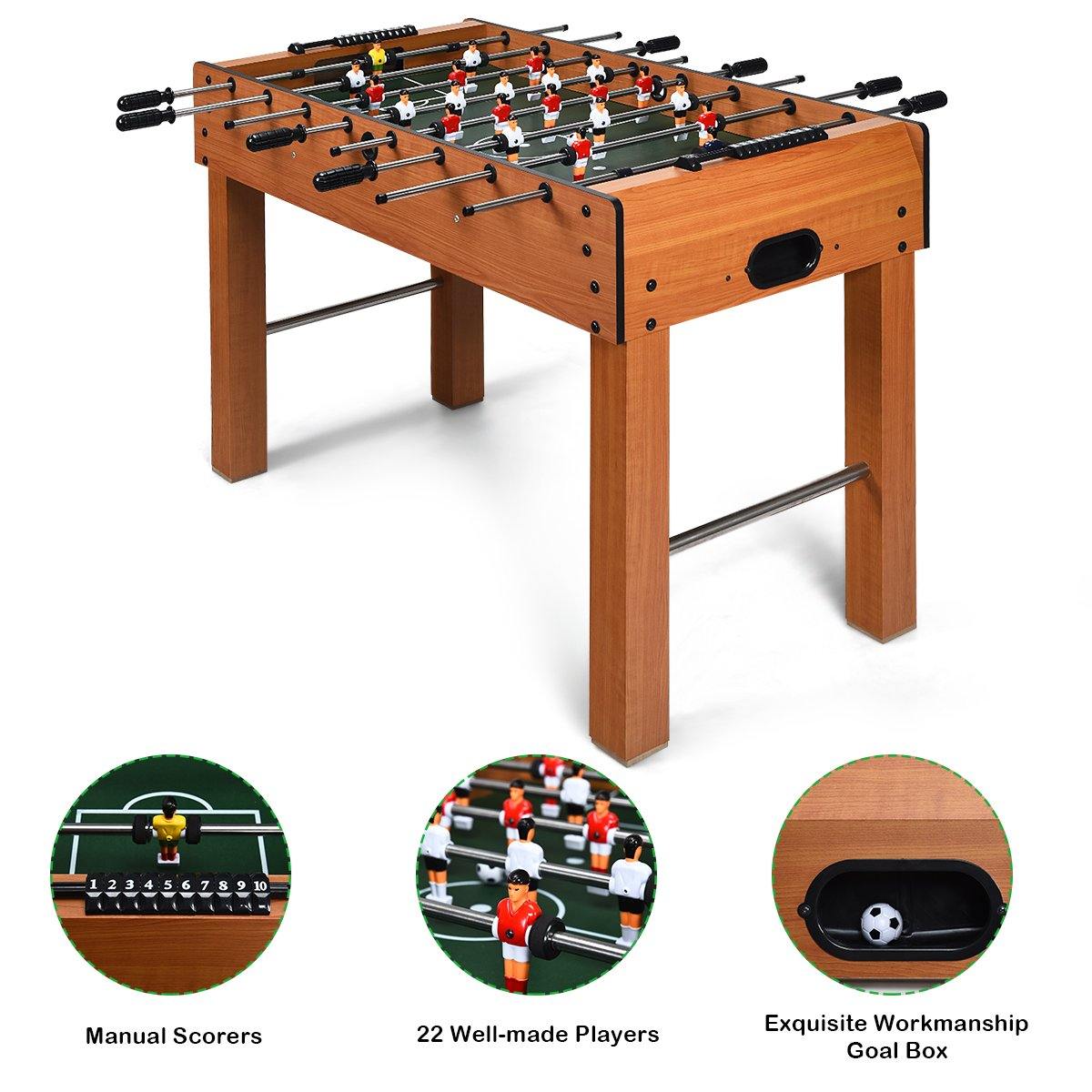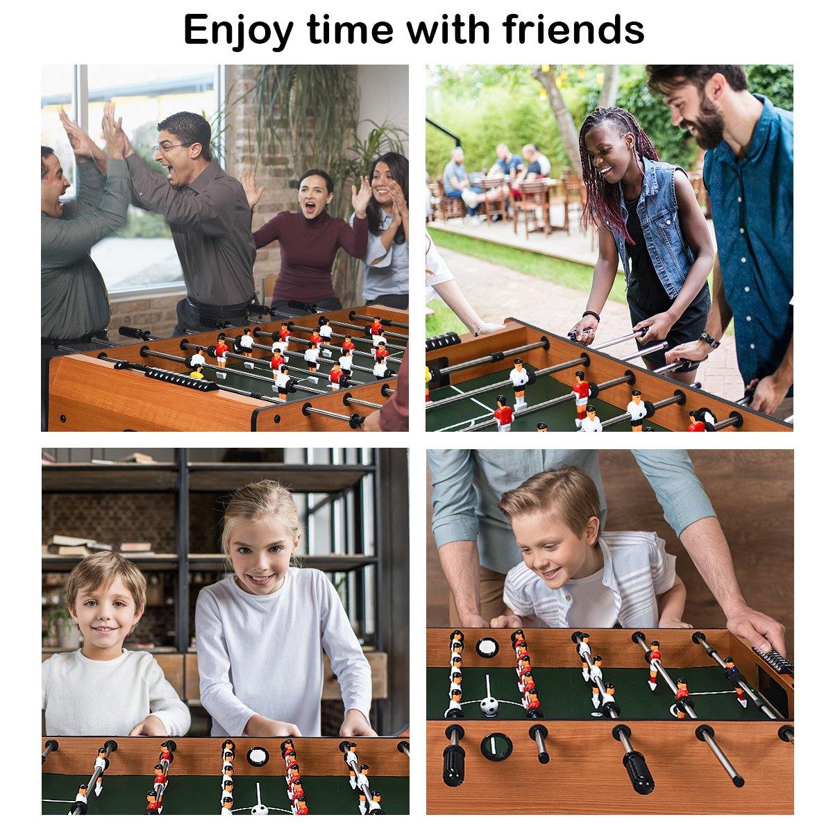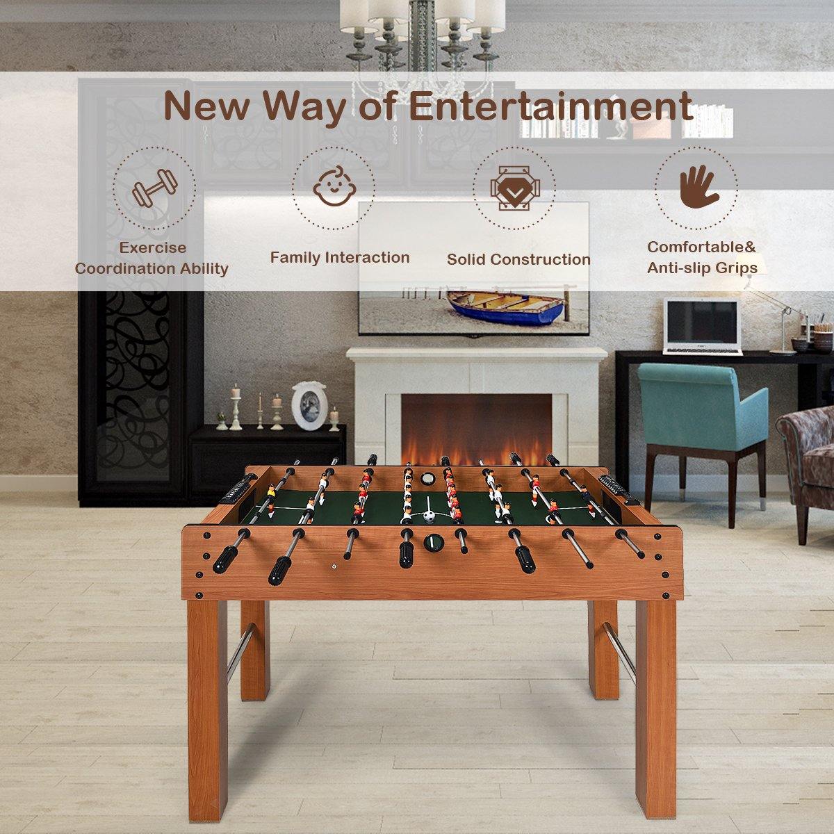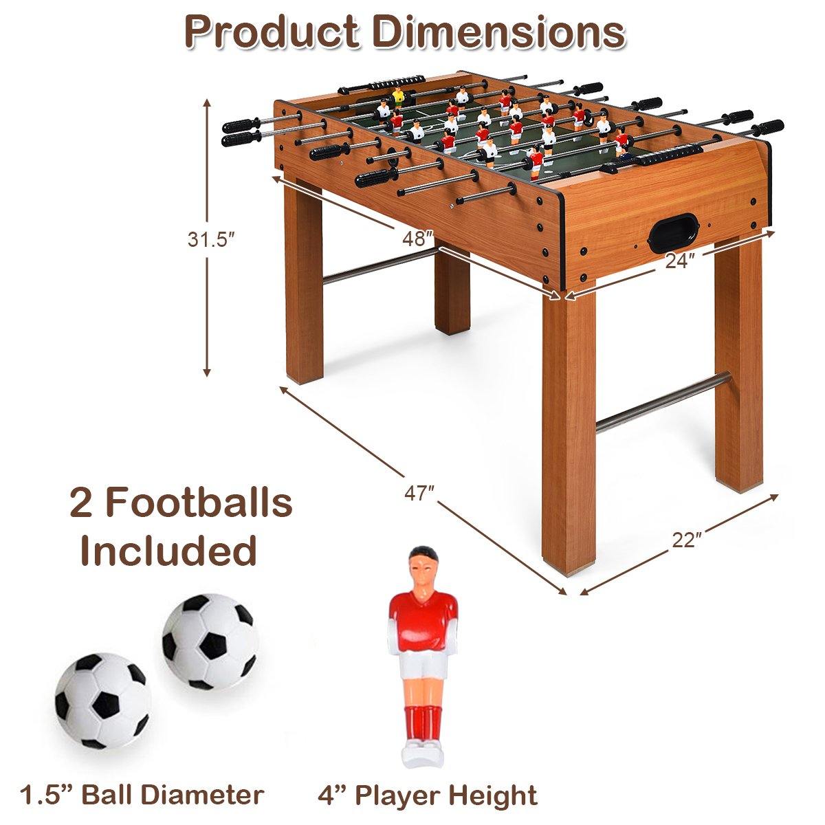 It simulates real football fields, players, and football to provide the best gaming experience. MDF construction is stable and makes this table doesn't shake when use. Stainless steel rods with textured handles rotates smoothly and are easy to grasp. With 48"length and 8 rods, this game table is suitable for 2-4 people to enjoy the interactive games at the same time. Featuring wood texture, it looks fashionable in the living room, game hall, etc.